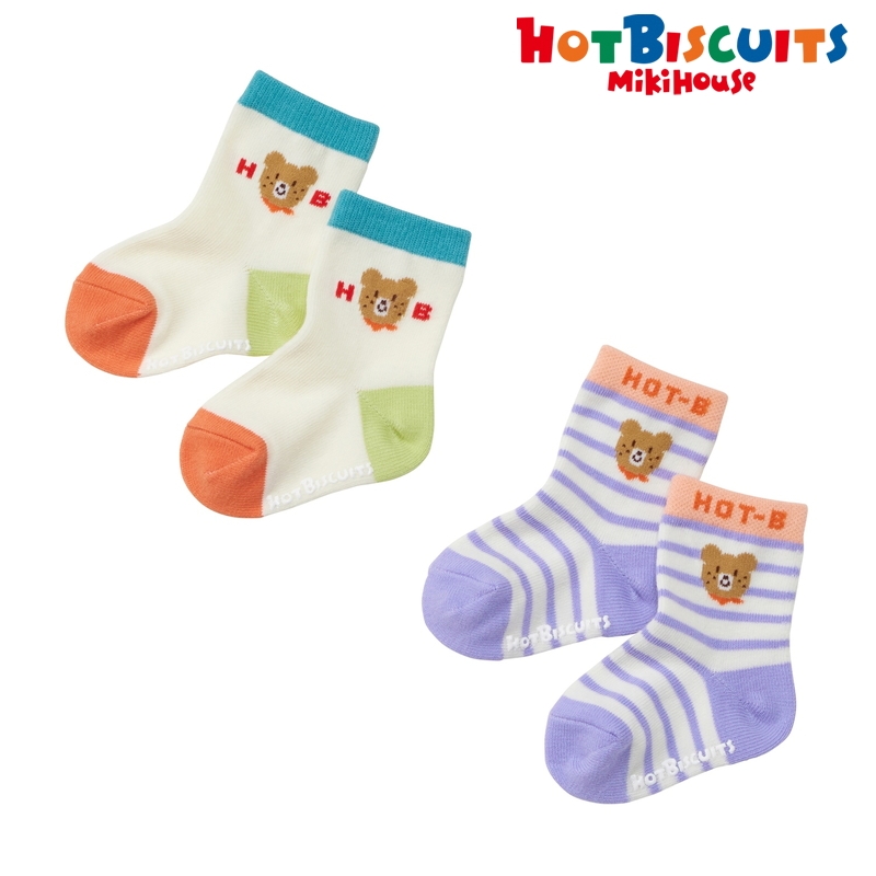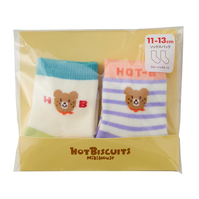 ミキハウス ホットビスケッツのクルーソックス2足セット。