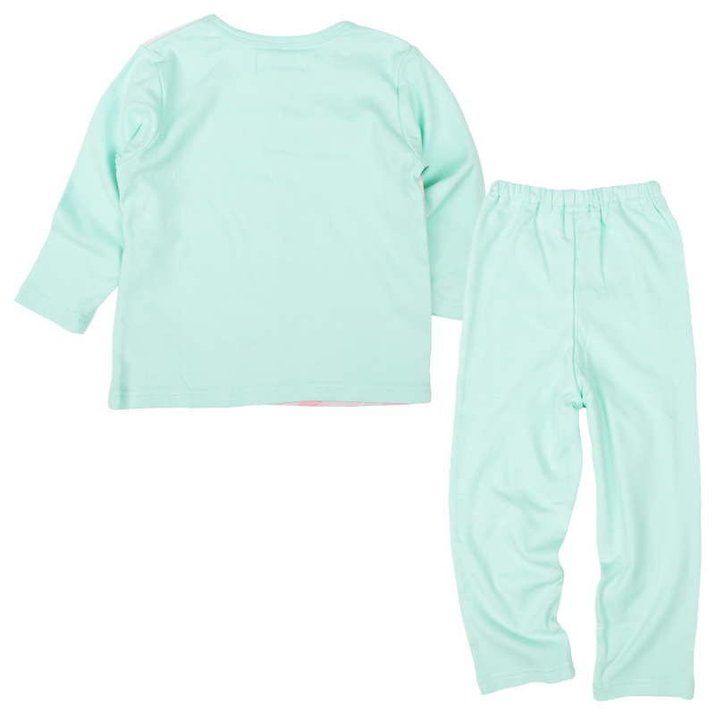 ●素材=本体:綿100% リブ部分:綿95% ポリウレタン5% ●サイズ=100(バスト70~80 ウエスト60~63) 110(バスト73~85 ウエスト65-66) 120(バスト76~90 ウエスト70-72) トップス:100 着丈39.7 袖丈45 110 着丈41.5 袖丈49 120 着丈43.3 袖丈54