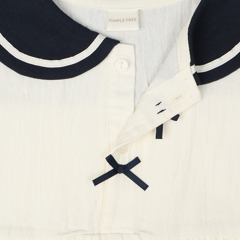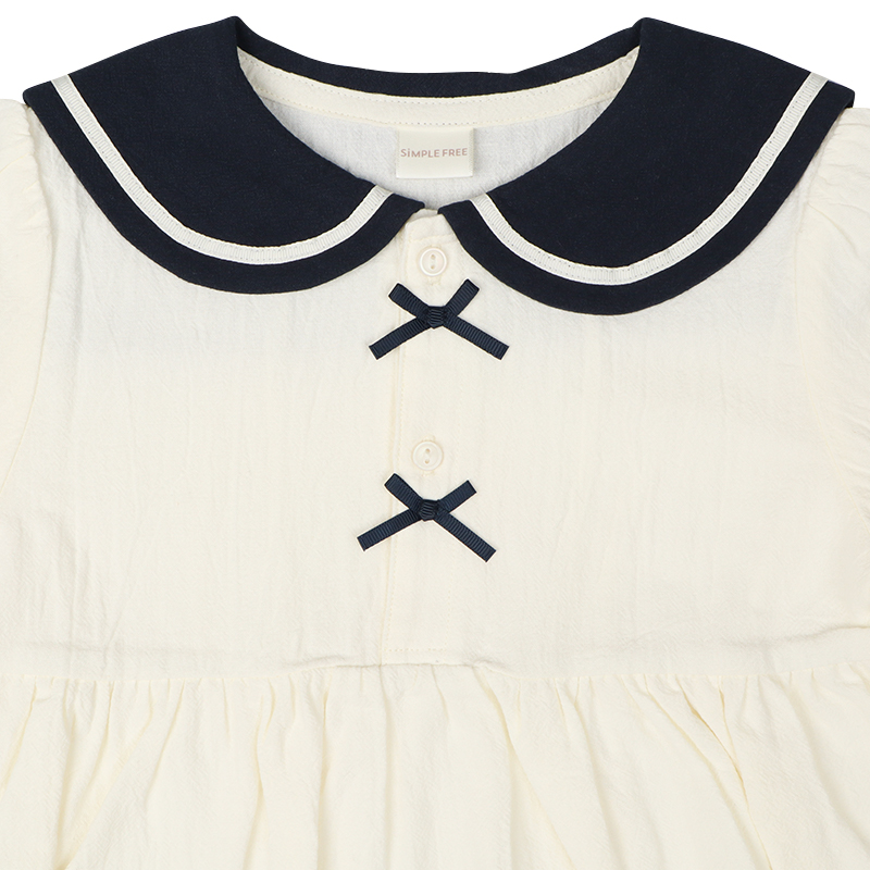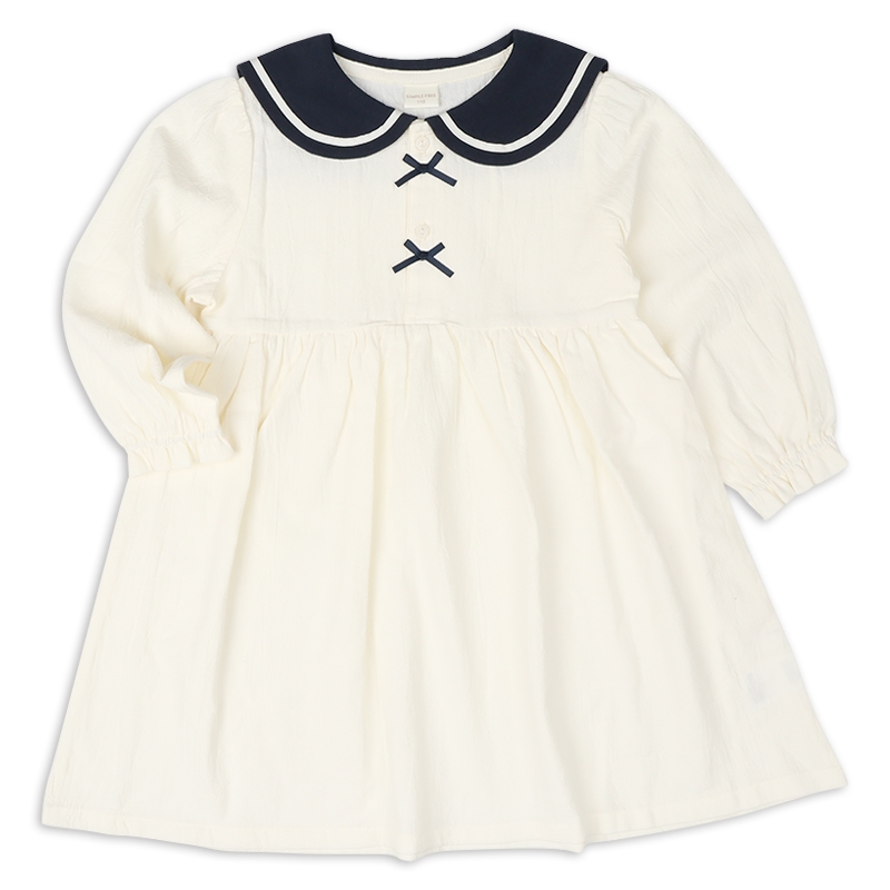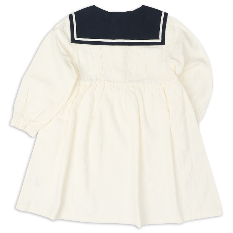 1枚でさらりと着こなせるセーラーワンピースです。定番のアイボリーとブラックとの2色展開。前開きボタンのため、お着替えしやすい仕様となっています。普段使いはもちろんお出かけやフォーマルな場でも使える1枚です。