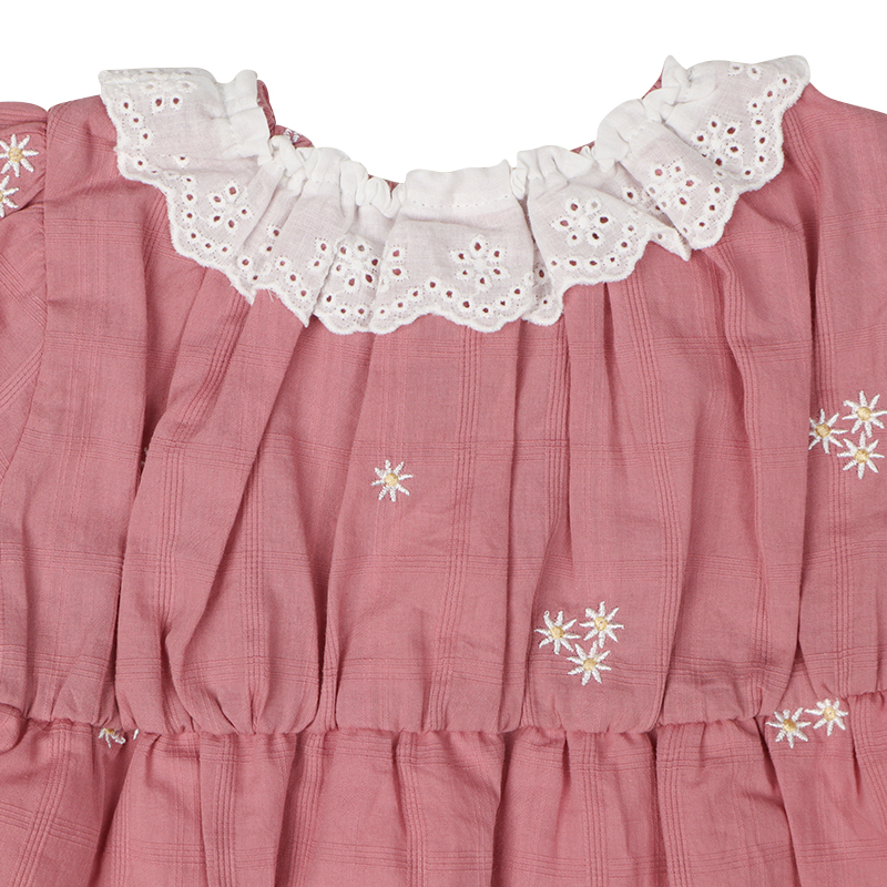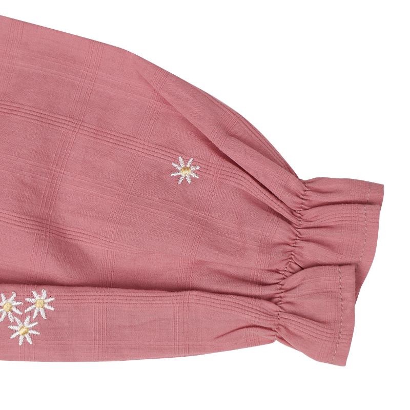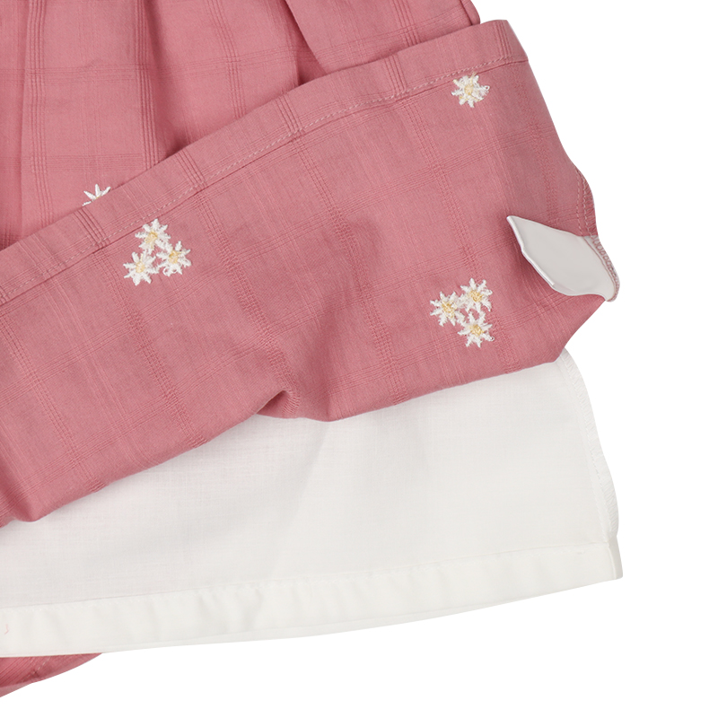 素材 格子柄シーチング 綿100% 裏地 ポリエステル65%綿35% 刺しゅう糸 ポリエステル100% サイズ80/90/95 総丈 48/51/53.5 身巾 29/30/31 肩巾 23/24/25 裾巾 56/58/60cm