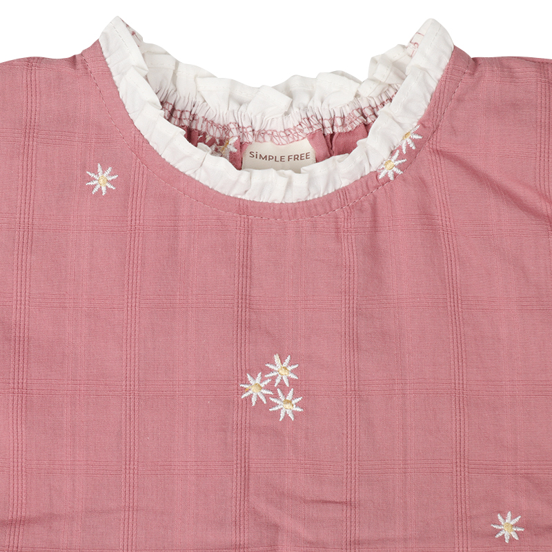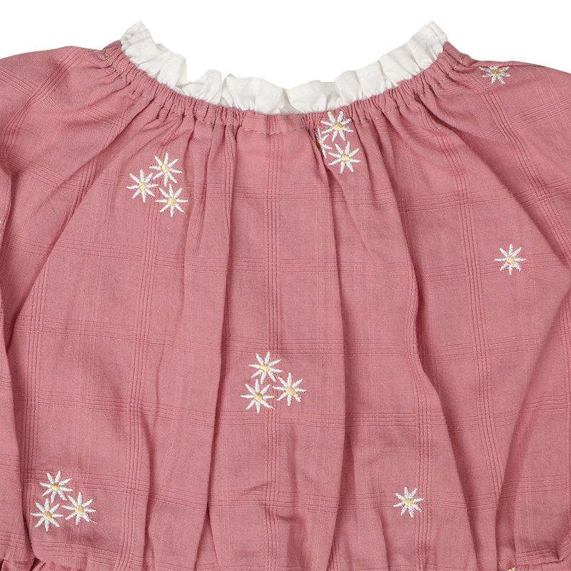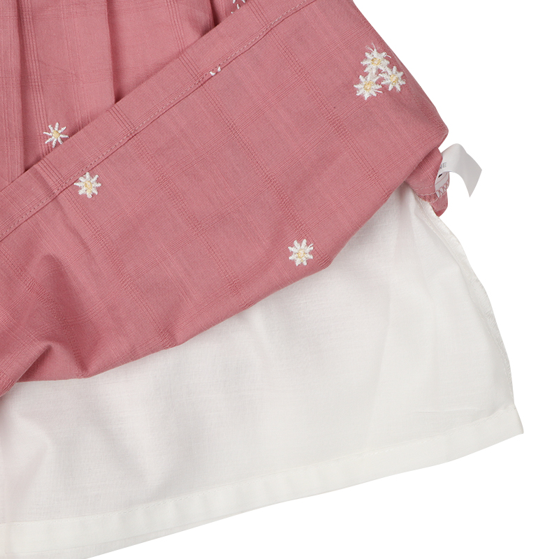 素材 格子柄シーチング 綿100% 裏地 ポリエステル65%綿35% 刺しゅう糸 ポリエステル100% サイズ100/110/120 総丈 56/61/66 身巾 33/35/37 肩巾 26/28/30 裾巾 62/66/70cm