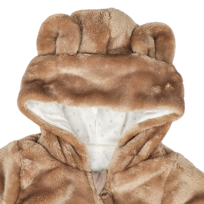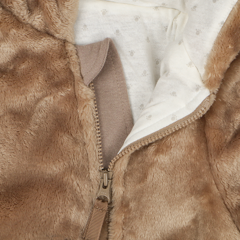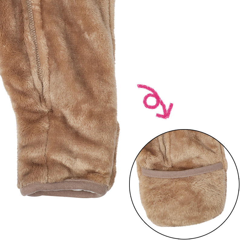 ・組成 本体 ポリエステル100% 裏地部分 ポリエステル65% 綿35% リブ部分 ポリエステル65% 綿30% ポリウレタン5% ・スペック 60-70サイズ 総丈60cm 肩幅23cm 胸幅32cm 袖丈25.5cm 70-80サイズ 総丈66cm 肩幅25cm 胸幅34cm 袖丈28.5cm