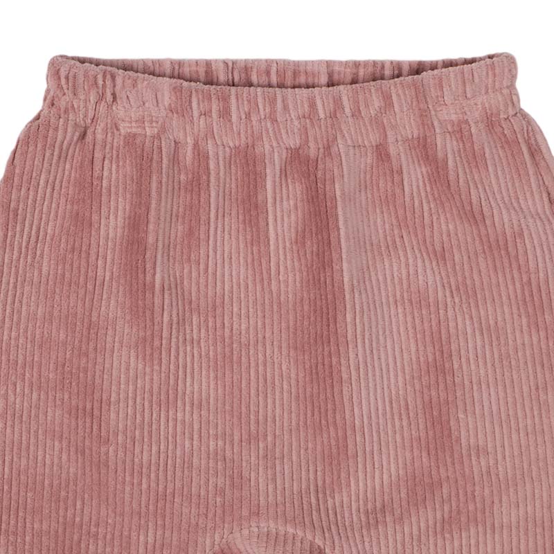 ニットコールの生地を使用したパンツです。 ふっくらとしたシルエットにこだわり、元気なお子さんでも窮屈さを感じさせません。 ウエスト部分がよく伸びる仕様にしております。 着回しもしやすく毎日でも着たくなる1着です。
