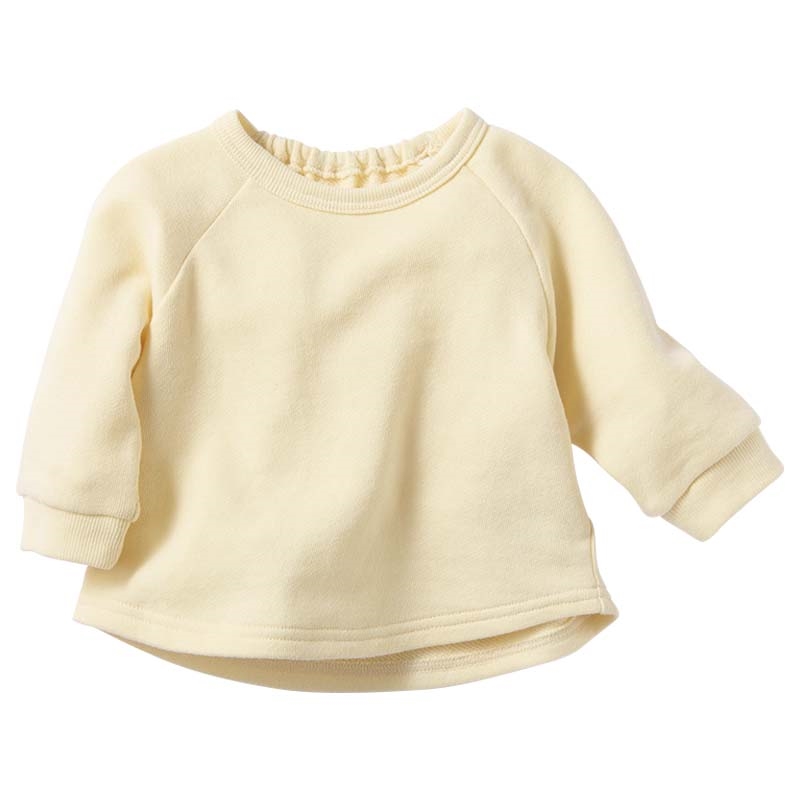ゆったりとした形の裏毛のトレーナーです。 動きやすいラグラン袖で元気いっぱいのお子さんにも窮屈さを感じさせません。 シンプルなデザイン・シルエットなので着て行く場所を選びません。 着回しもしやすく毎日でも着たくなる1着です。