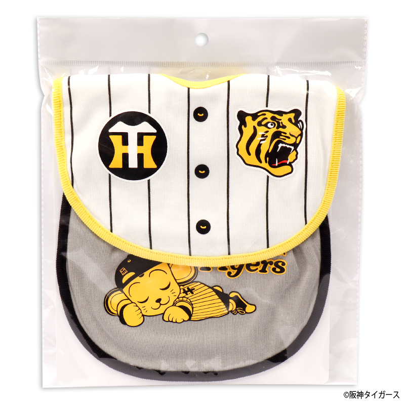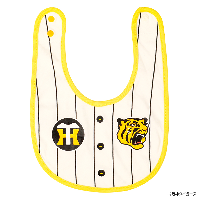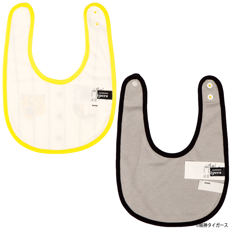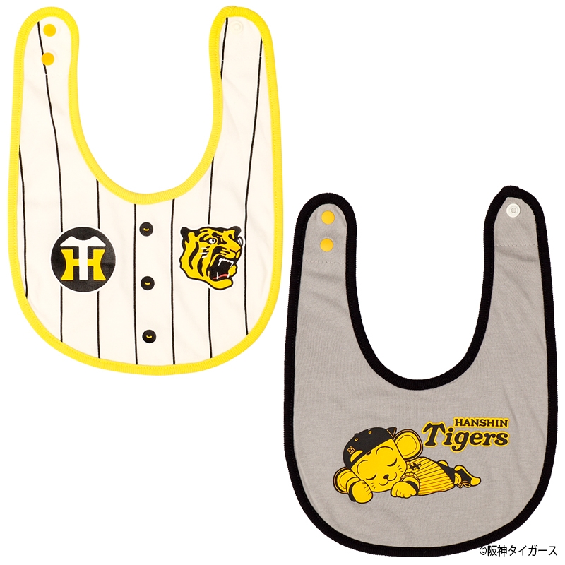 阪神タイガースのロゴとキー太のスタイです。洗い替えに便利な2枚組。便利なお名前ネーム付きです。 両面カットソー素材で優しい付け心地。ボタン2個付きで首周り調整可能です。シンプルなコーディネートのアクセントになります。