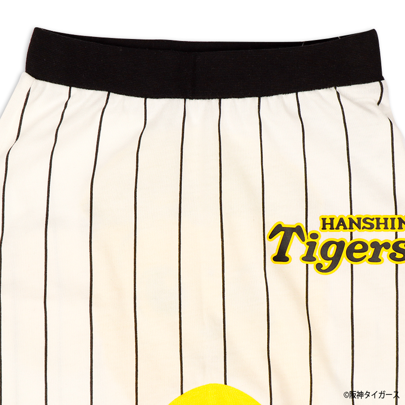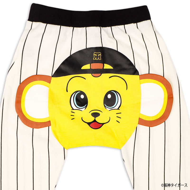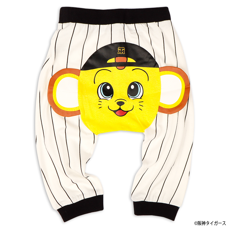 お尻に阪神タイガースのキー太の大きなモチーフが付いたインパクトのあるかわいいパンツです。コーディネートの主役になる1枚です。 便利なお名前ネーム付き。かわいいキャラクターと一緒に楽しくお出かけしましょう。