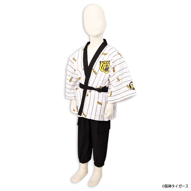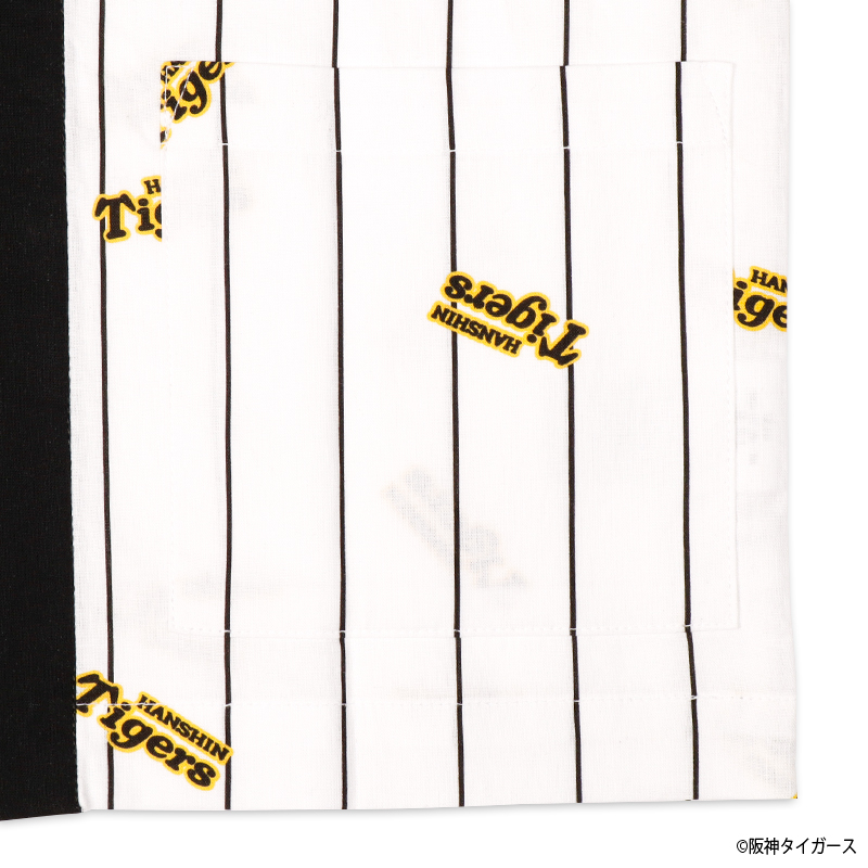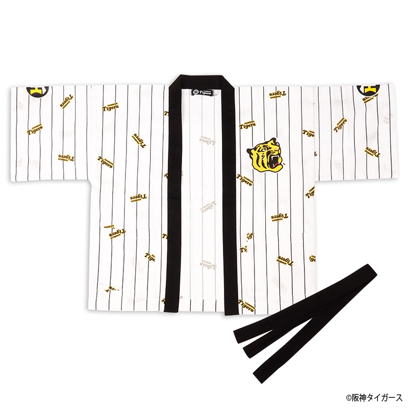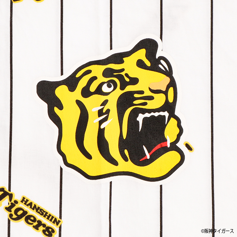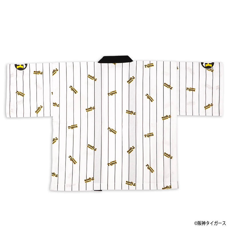 阪神タイガースの総柄プリントの法被です。総柄のロゴプリントがおしゃれな夏にピッタリな1枚です。涼しい綿100%素材。 便利なお名前ネーム付き。野球観戦に夏祭りに、色々なシチュエーションでご着用いただけます。