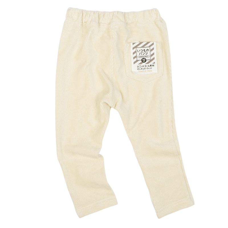 縦ウネの表面感と、柔らかさが特徴的なニットコール素材を使用したロングパンツ シンプルな形でどんな服にも合わせやすいので、毎日でも履きたくなるパンツです。 総ゴム仕様のウエストなので着脱も簡単に行えます。 園でも使える名前ネーム付きです。