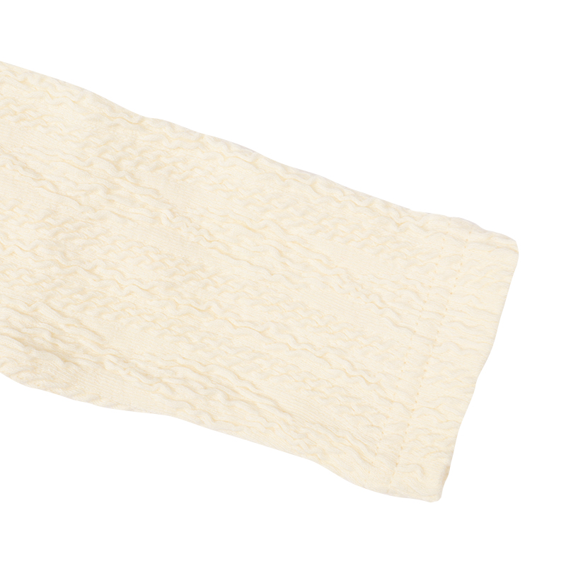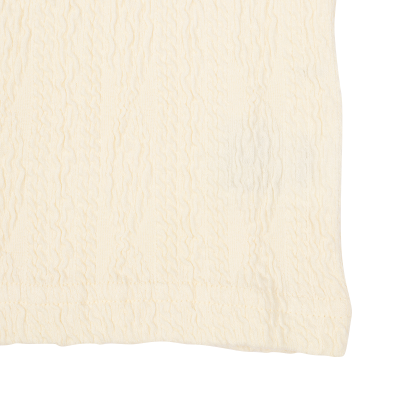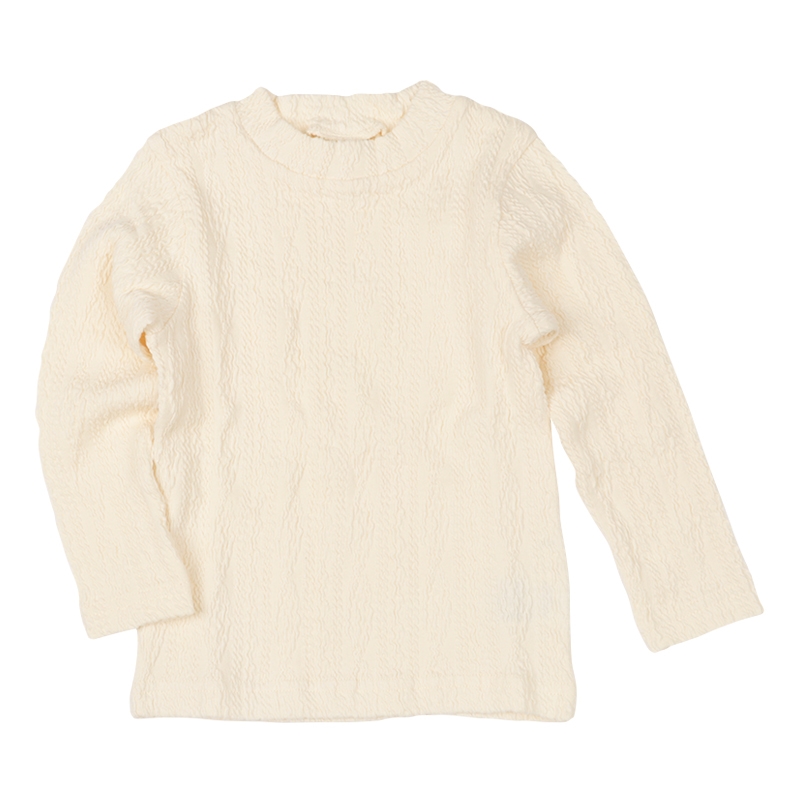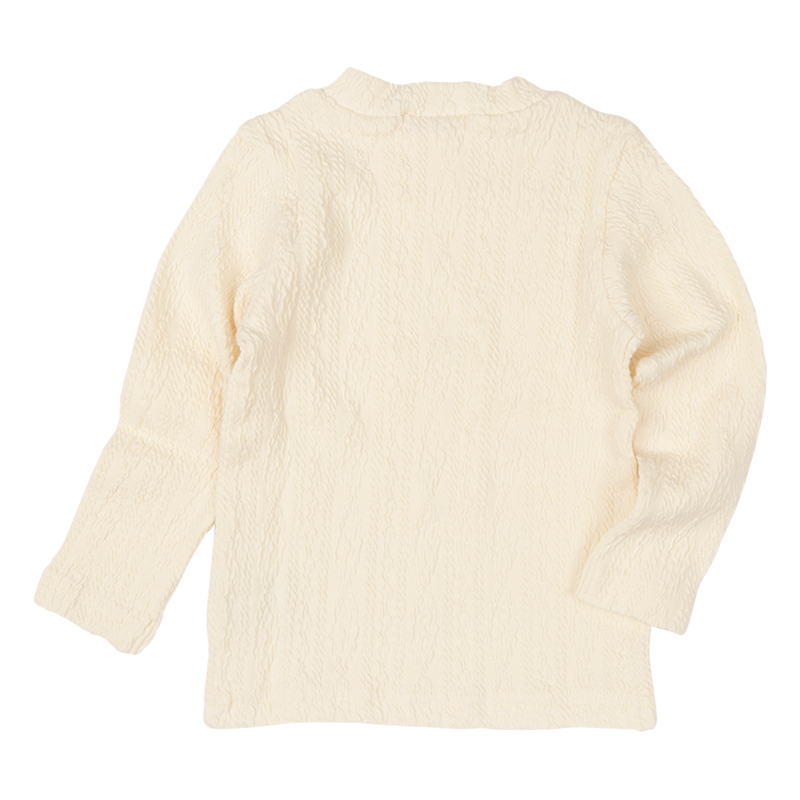 でこぼこがポイントなジャガード生地を使用した洋服です。 何にでも合わせやすいのでスカートやパンツの合わせはもちろん、 レイヤードする時にも使えるアイテムです。 保育園や幼稚園に持っていく時に便利な名前ネーム付き。