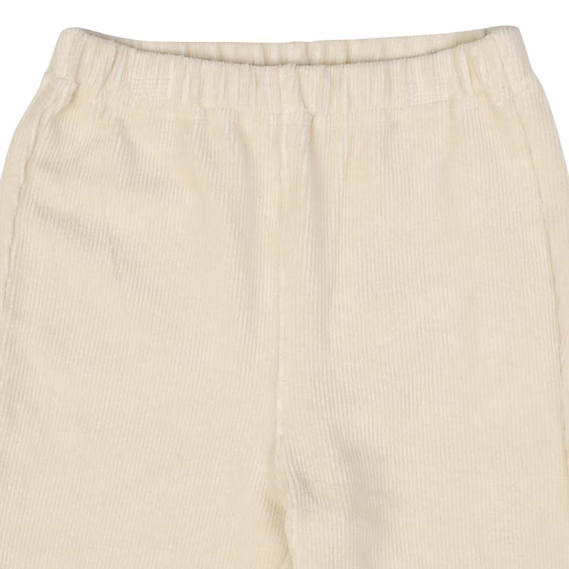 縦ウネの表面感と、柔らかさが特徴的なニットコール素材を使用したロングパンツ シンプルな形でどんな服にも合わせやすいので、毎日でも履きたくなるパンツです。 総ゴム仕様のウエストなので着脱も簡単に行えます。 ひざ部分のモチーフもポイントです。 園でも使える名前ネーム付きです。