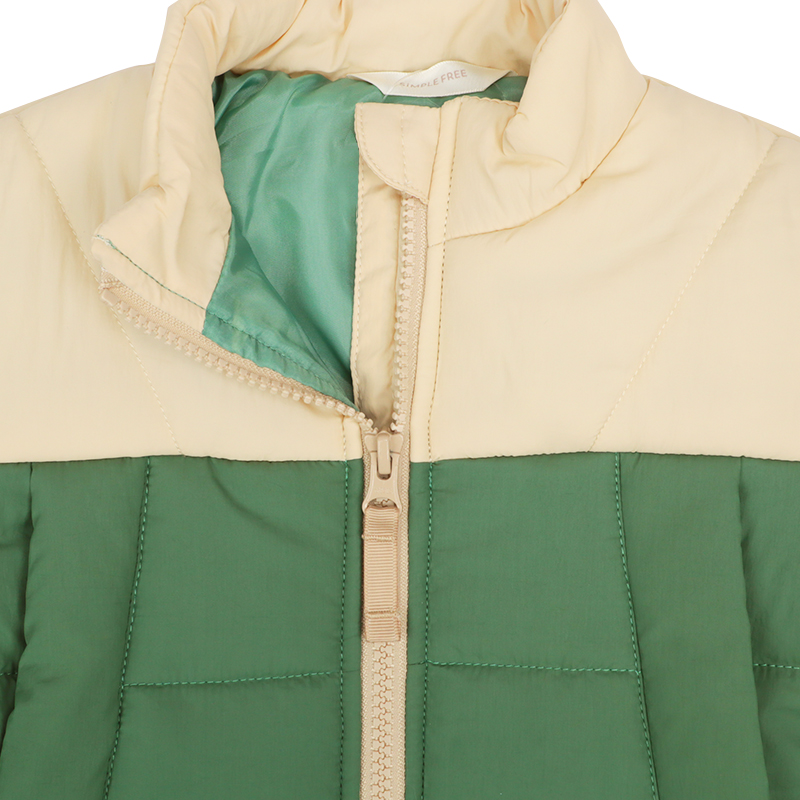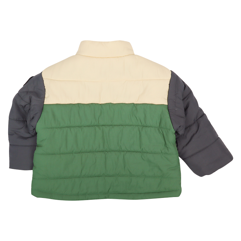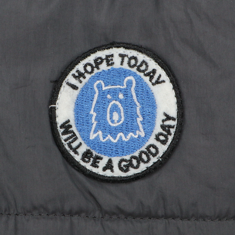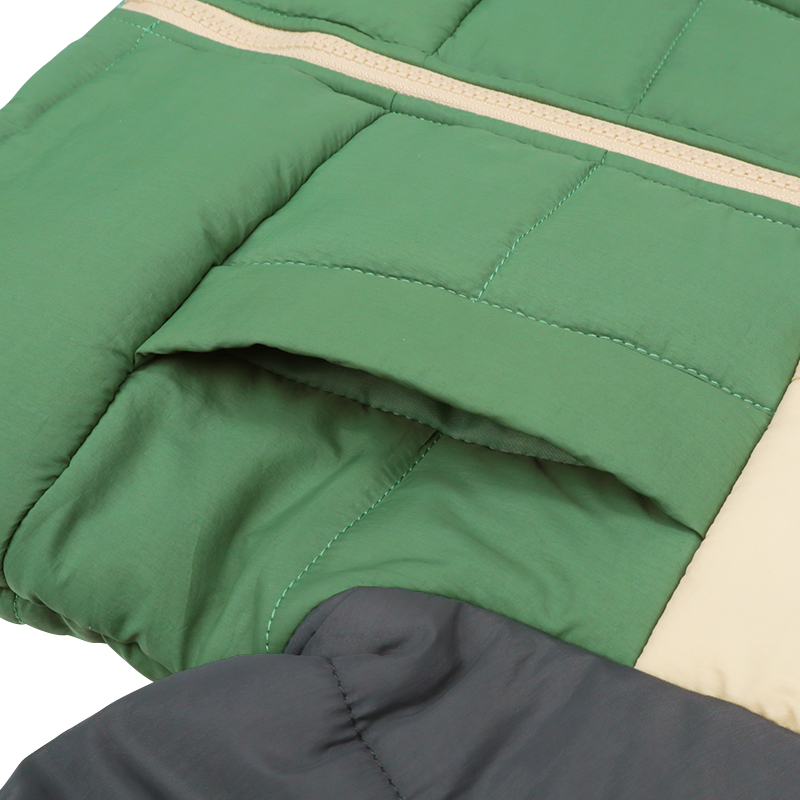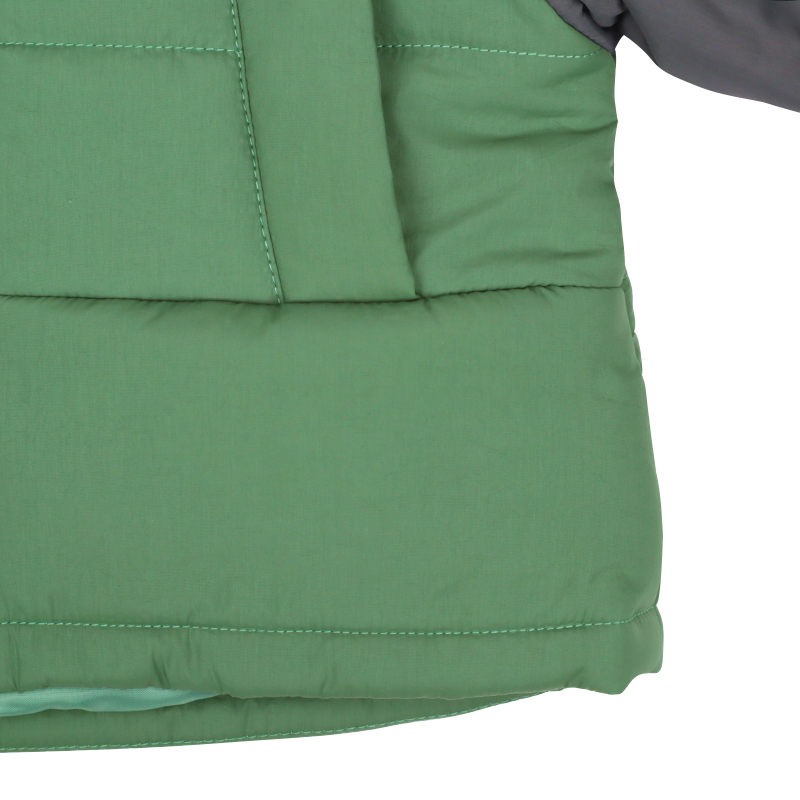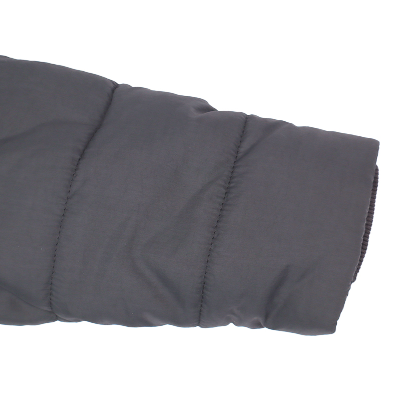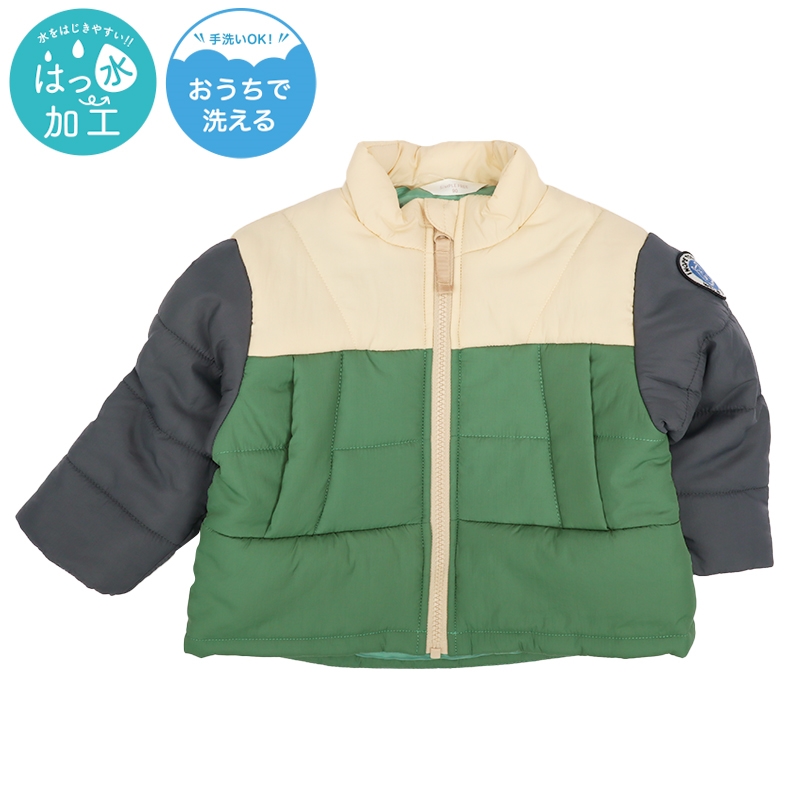 ●素材=本体 表地:ナイロン100% 裏地:ポリエステル100% 詰物:ポリエステル100% リブ部分:綿60% ポリエステル35% ポリウレタン5% ●サイズ(約 cm)=80(バスト73 着丈36.4) 90(バスト76 着丈38.6) 95(バスト78 着丈41.3)