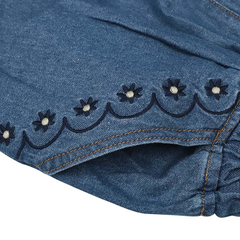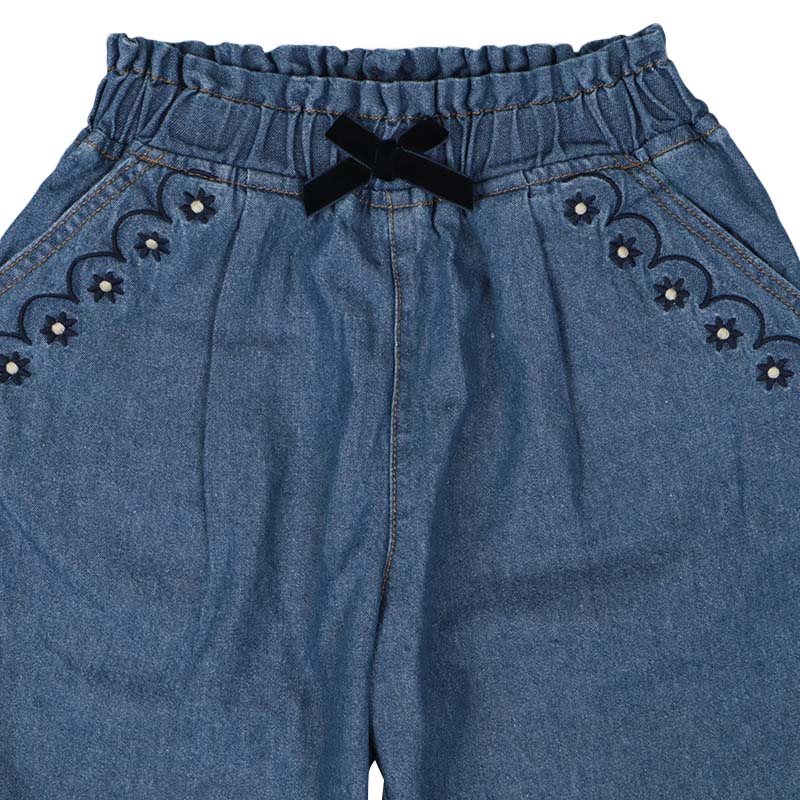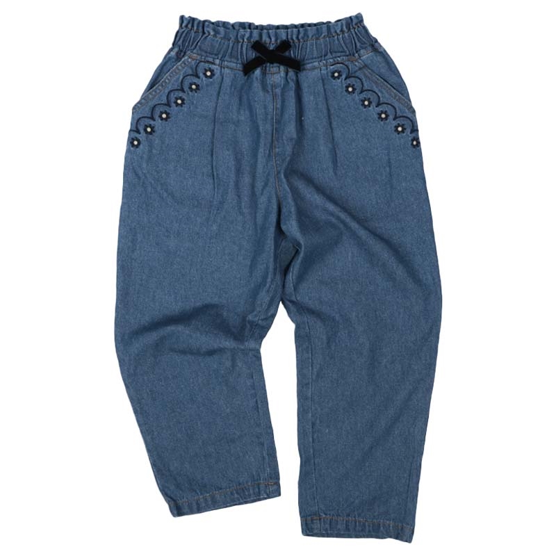 ●素材=本体:綿100% 刺繍糸:ポリエステル100% ●サイズ(約 cm)=100(ウエスト35.5 ボトム丈56.0) 110(ウエスト37.5 ボトム丈62.0) 120(ウエスト39.5 ボトム丈69.0)