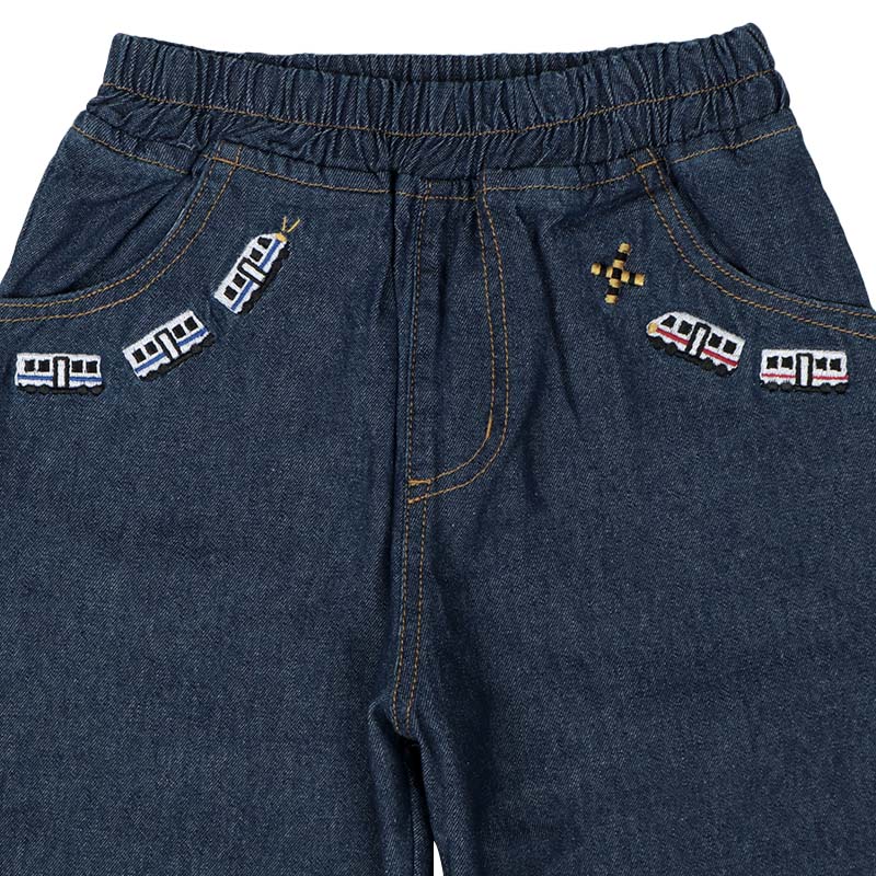 ●素材=本体:綿100% 刺繍糸:ポリエステル100% ●サイズ(約 cm)=100(ウエスト34.0 ボトム丈55.0) 110(ウエスト36.0 ボトム丈61.0) 120(ウエスト38.0 ボトム丈68.0)