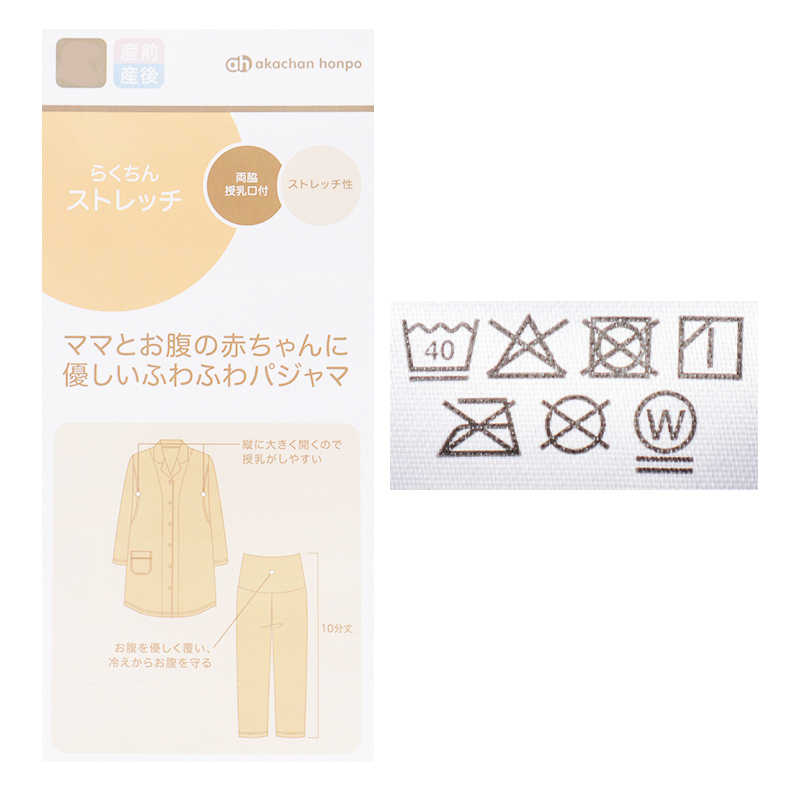やわらかで着心地がよく、気持ちいい素材のマタニティパジャマ。ストレッチ性もあり、体の動きに合わせて快適フィット。大きく開く授乳口付きで授乳が楽ちん。スナップボタン不使用、脇部分のスリットタイプ授乳口なので授乳もしやすく、見た目もすっきり。トップスがめくれても、おなかを冷やさない腹巻付き。