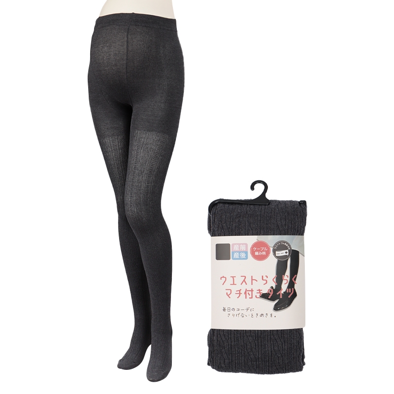 ケーブル編みの、マチ付きタイツとなります。 ウエスト部分ゴムにより、サイズ調節が、可能となっております。 寒い時期に、パンツでもスカートでも、着回しが可能となっております。 マチ付きなので、履き心地がとてもいいです。