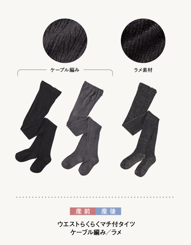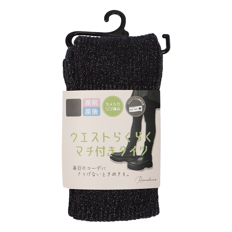 ラメ入りリブ編み素材の、マチ付きタイツとなります。 ウエスト部分のゴムにより、サイズ調節が可能となっております。 寒い時期に、パンツでもスカートでも、着回し可能です。 マチ付きなので、履き心地がとてもいいです。