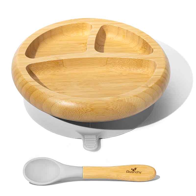 竹とシリコーンの組み合わせでできたプレートとスプーンのセットです。 手づかみ食べが始まった頃には、お皿を器ごと投げられることがしばしば、、、 底に付いた吸盤でテーブルに固定させておくことができます。 吸盤についているタブを引っ張ると簡単に外すことができ、片づけるときにも便利です。取り外し可能で洗うのも便利。 吸盤は取り外しできるので上手に食べられるようになれば外しても使えます。大人用の食器としても使えます。 スプーンの先端は乳歯、歯茎にやさしいやわらかなシリコーン使用