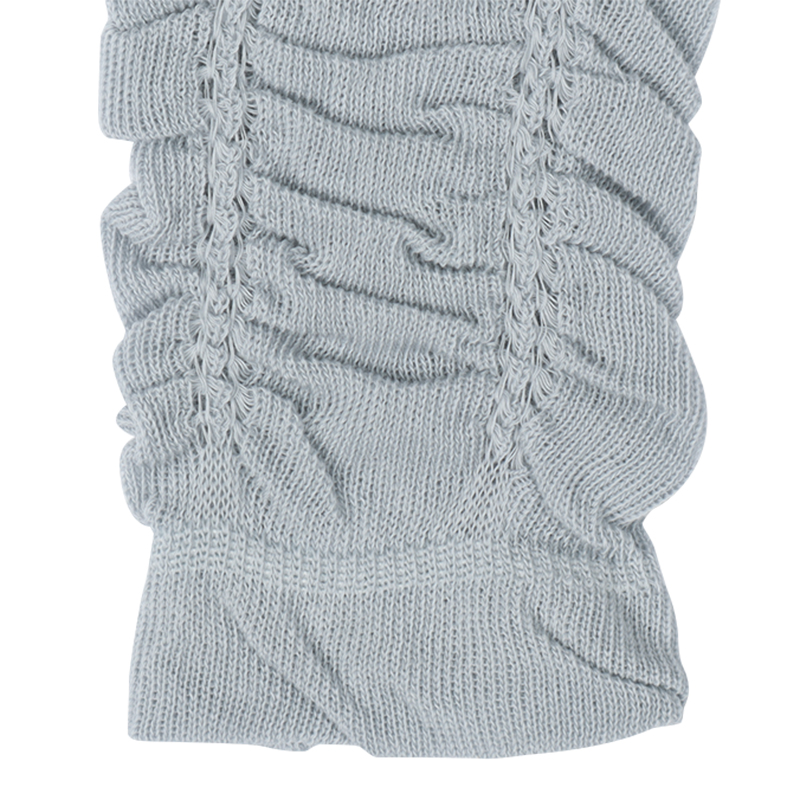 オーガニックコットンを使用したレッグウォーマー。 くしゅくしゅとした編地に、裾はフリルでかわいらしいアクセントに。 冬場の冷え対策はもちろん、夏場のエアコン冷え防止、ハイハイをし始めたお膝のサポートにもお使いいただけます。