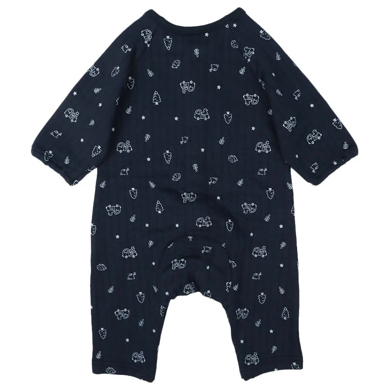 ・組成 本体 表地綿100% 中わたポリエステル100% 裏地綿100% リブ部分 綿95% ポリウレタン5% 見返し 綿100% ・スペック 60サイズ 総丈51cm 胸幅26cm 袖丈24.6cm 70サイズ 総丈55cm 胸幅27cm 袖丈28cm 80サイズ 総丈59cm 胸幅28cm 袖丈31.4cm