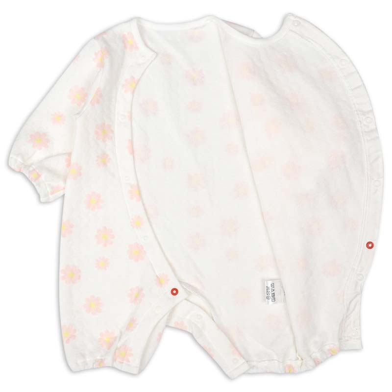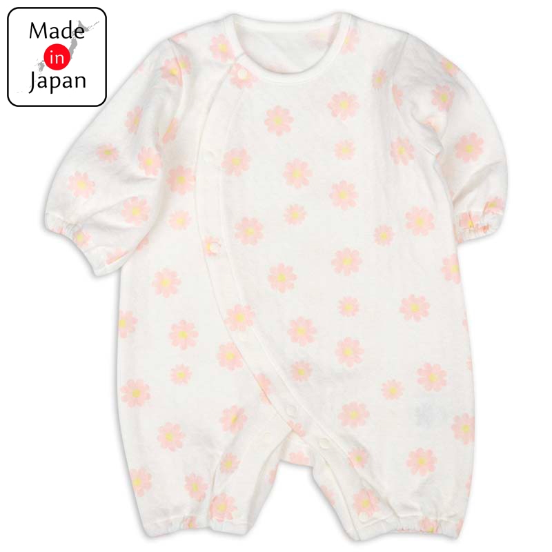 ●素材=綿90% ポリエステル10% ●サイズ(約・cm)= 60(着丈43・身幅27.5・袖丈18・股下10) 70(着丈46・身幅28.5・袖丈21・股下11) 80(着丈49・身幅29.5・袖丈24・股下12)