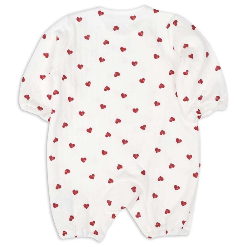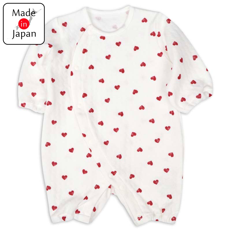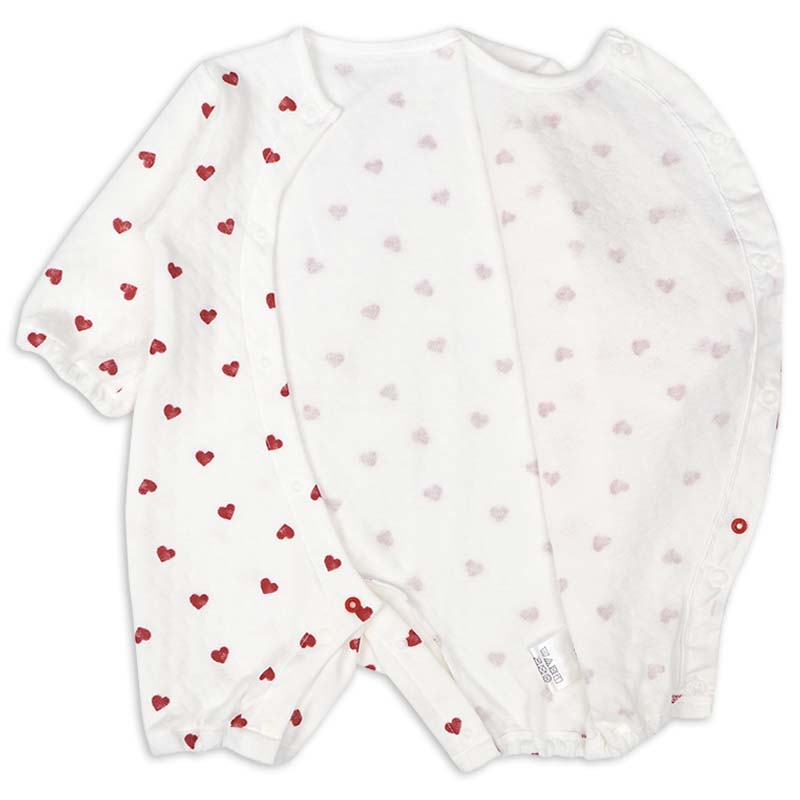 ●素材=綿90% ポリエステル10% ●サイズ(約・cm)= 60(着丈43・身幅27.5・袖丈18・股下10) 70(着丈46・身幅28.5・袖丈21・股下11) 80(着丈49・身幅29.5・袖丈24・股下12)