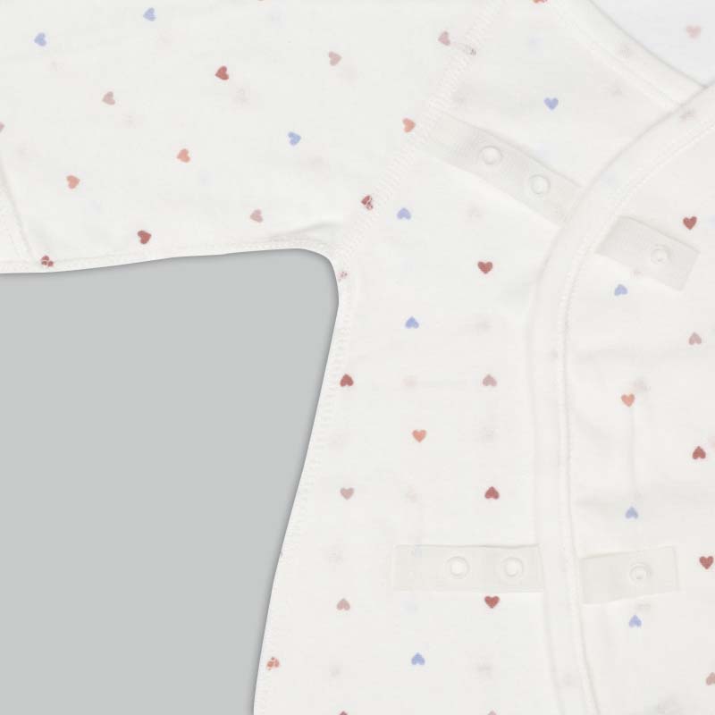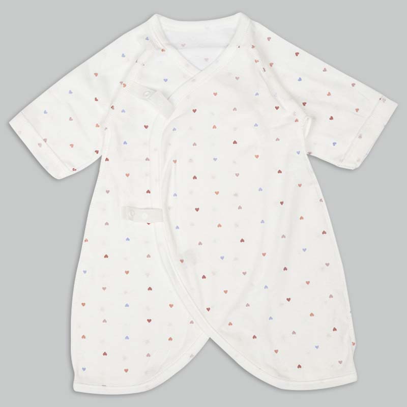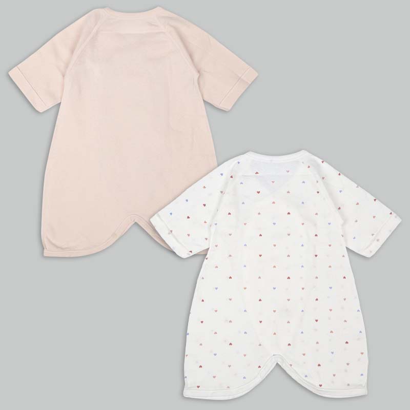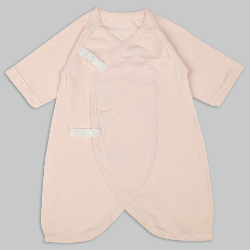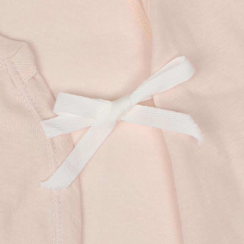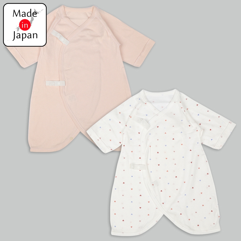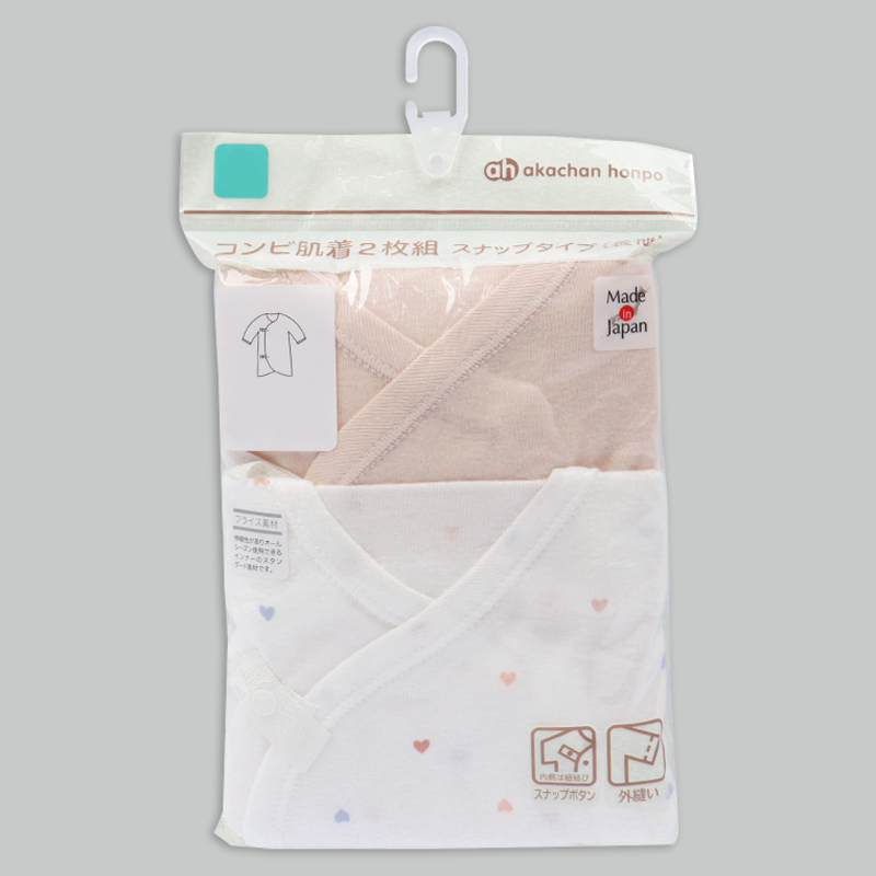 洗い替えにうれしいコンビ肌着2枚セット 肌触りの良い綿100%のフライス生地使用。 縫いしろは赤ちゃんの肌に直接あたらないやさしい仕様。 外側はスナップタイプでお着替え簡単。 内側はひもタイプで調節可能で肌当たりもやさしい