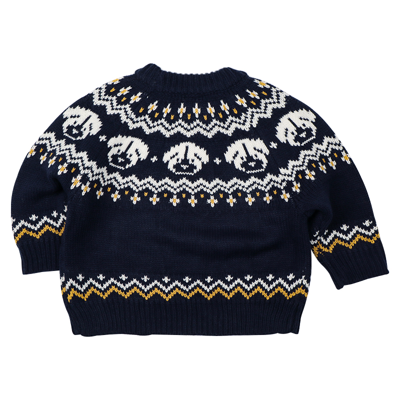 赤ちゃん本舗オリジナルデザインのニットトレーナーです。いぬ柄が入った求心柄が可愛いデザインです。手持ちのボトムに合わせておしゃれなコーデを楽しめます。ご家庭で洗濯できるので、普段着からお出掛け着まで幅広く使えて手軽にニットが楽しめます。
