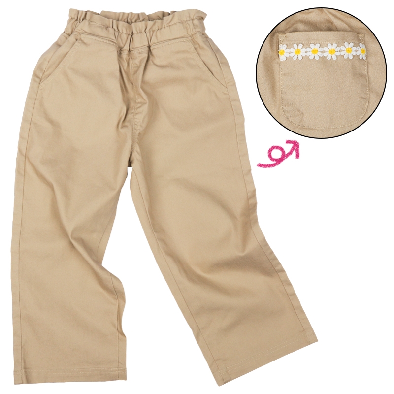 ・素材 綿70% ポリエステル27% ポリウレタン3% ・寸法(約・cm) [100cm]ウエスト44・ヒップ74・総丈56・股上21・股下35 [110cm]ウエスト46・ヒップ78・総丈61.5・股上21.5・股下40 [120cm]ウエスト48・ヒップ82・総丈67.5・股上22.5・股下45