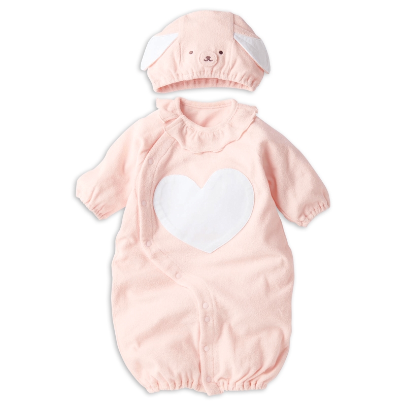 ●素材=ひよこ ドレスオール:本体 綿100 % パイルモチーフ 綿77%ポリエステル23% 帽子:本体 綿100 % パイルモチーフ 綿77%ポリエステル23% 雪だるま ドレスオール:本体 綿100 % フェルト部分 ポリエステル100% 帽子:本体 綿100 % フェルト部分 ポリエステル100% うさぎ・ほ乳びん・うし・恐竜 ドレスオール:綿100 % 帽子:綿100 % ●サイズ(約・cm)= ドレスオール 50-60(身丈50・身幅25・袖丈27) フード いちご・にわとり・恐竜(丈12.5・巾18) ほ乳びん(丈18・巾18)