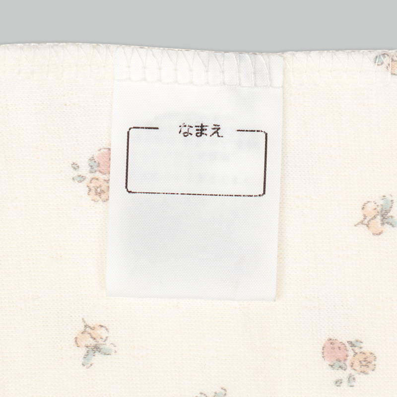 本体に使用している接結生地は、2枚の生地を重ねて部分的に接結(つなぎ合わせる)した素材で 空気を含んだ柔らかい風合いが特徴です。空気の層ができることで、暖かさを保ちやすい素材です。 保育園でのお着替えなどにも便利な、名前を書いても滲みにくいおなまえ欄付きの洗濯ネーム付き。 洗い替えに便利な2枚組です。
