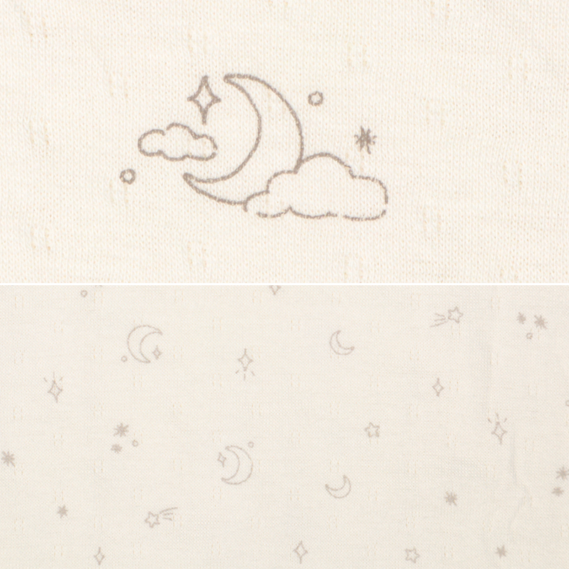 本体に使用している接結生地は、2枚の生地を重ねて部分的に接結(つなぎ合わせる)した素材で 空気を含んだ柔らかい風合いが特徴です。空気の層ができることで、暖かさを保ちやすい素材です。 保育園でのお着替えなどにも便利な、名前を書いても滲みにくいおなまえ欄付きの洗濯ネーム付き。 洗い替えに便利な2枚組です。