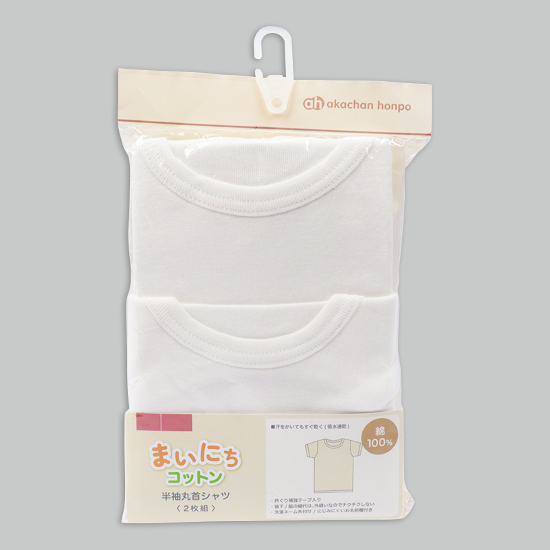 綿100%のやわらかく伸びのよいフライス編み素材に、汗をかいても乾きやすい吸水速乾機能をプラス。 衿ぐりには補強テープ入り。 袖下・脇の縫い代は外縫いで、洗濯ネームも外付けだからチクチクしません。 洗濯ネームには書いた文字が滲みにくいおなまえ欄付きで、保育園でのお着替えにも便利です。 洗い替えに便利な2枚組で、毎日の子育てをしっかりサポートします。