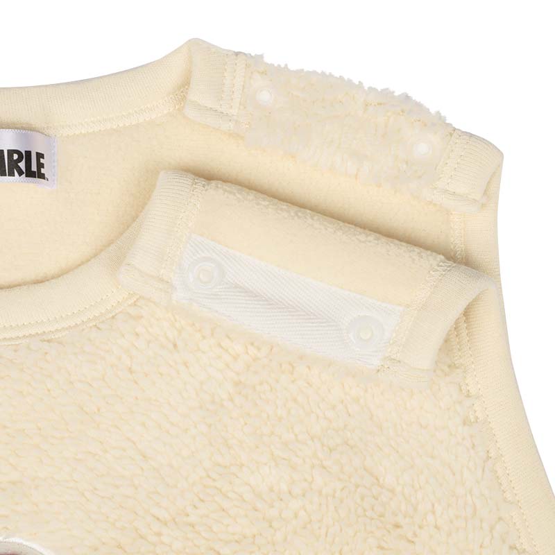 ●素材=[本体]ポリエステル100% [外周テープ]ポリエステル65% 綿35% [サガラ刺繍]アクリル100% [その他刺繍]ポリエステル100% ●サイズ(約・cm)= [70-90]着丈40 背肩巾28 身巾36 ●洗濯表示=洗濯可 ●原産国=中国製