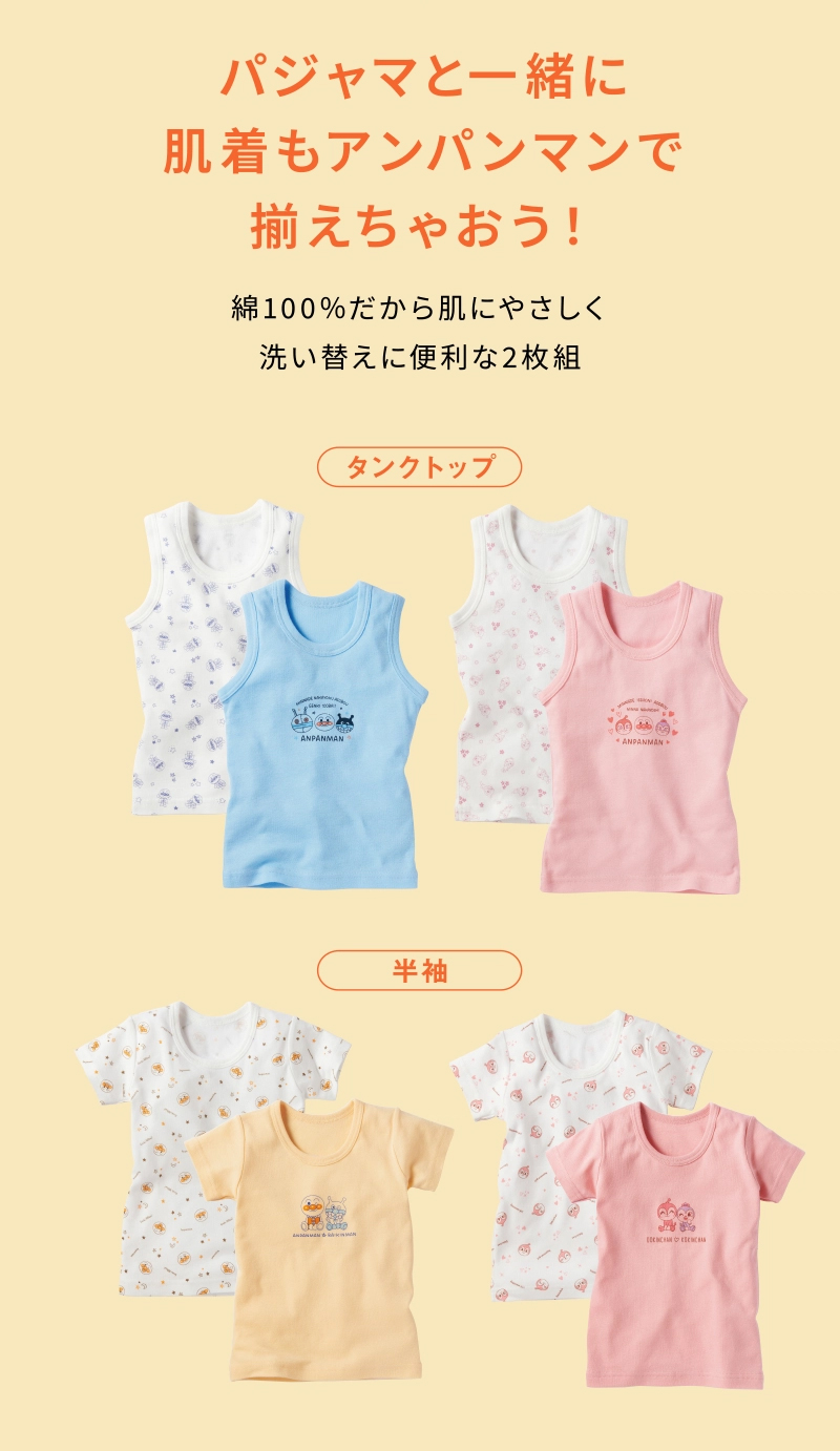 お子様に人気のアンパンマンのタンクトップです。 洗い替え用にも便利な2枚組です。 1枚はワンポイント柄で、もう1枚は総柄デザインになります。 素材には肌に優しい綿100%の生地を使用しております。 お名前ネーム付きです。