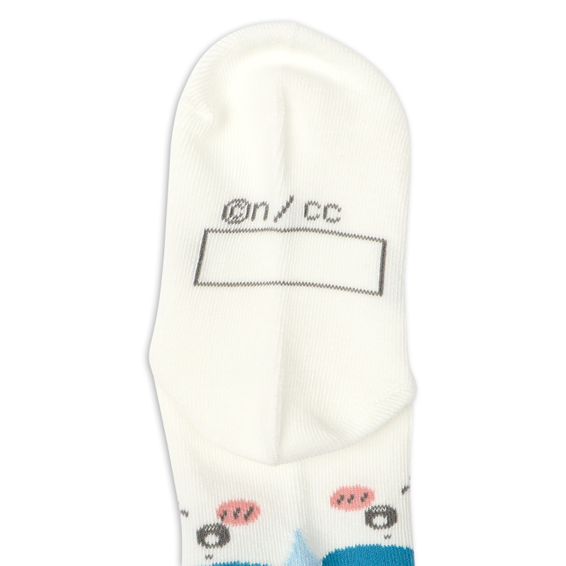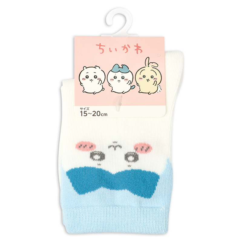 子供から大人まで人気のキャラクター『ちいかわ なんか小さくてかわいいやつ』キッズソックスです。ハチワレ顔デザインがかわいい靴下です。のび~る&フィット、伸縮性の良い糸を使用しています。足裏にはお名前欄がついています。