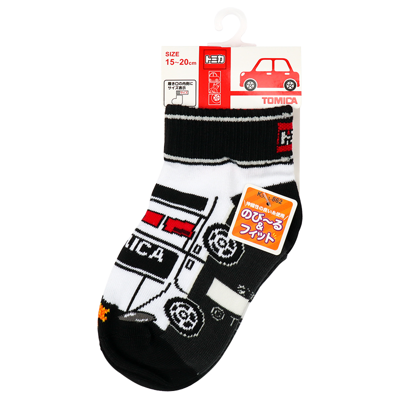 [キッズ]キッズソックス トミカ パトカー ブラック