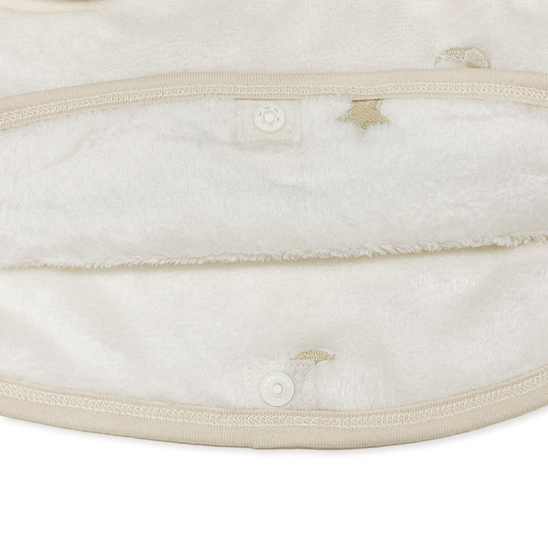 ●対象年齢:新生児~1歳頃 ●サイズ:身長50~80cm(巾35×丈48cm) ●素材: [本体・フランネル]ポリエステル87%・レーヨン12%・ナイロン1% [バインダー部分・ブロード]ポリエステル65%・綿35% ・洗濯ネット使用・色落ちする場合があるので、漬け置きを避け、洗濯後はすぐに脱水乾燥してください。 ・着用の際、摩擦などで他のものに色落ちする場合があります。 ・ボタンは閉じて洗濯をしてください。 ・生成及び淡色のものは蛍光増白剤の入っていない洗剤をご使用ください。 ・洗濯後は形を整えてすぐに干してください。 ・一度洗ってからご使用ください。 ・素材の特性上、着用中や洗濯したときに他のものに毛羽が付く場合があります。 毛羽が付着した際は、エチケットブラシやガムテープで除去してください。 ・洗濯の際は、他のものと一緒に洗わないでください。