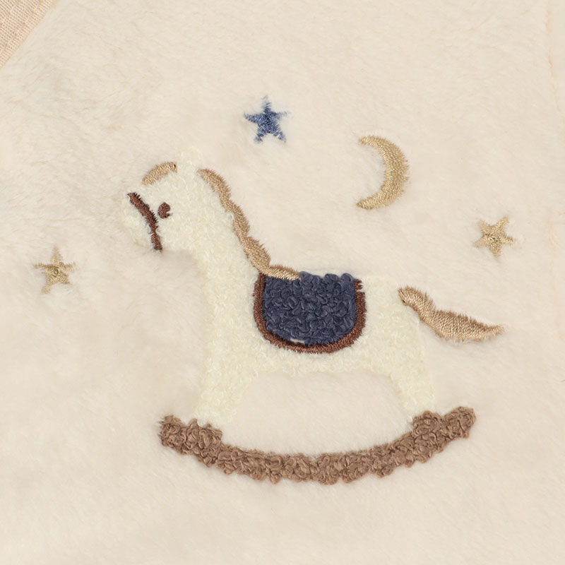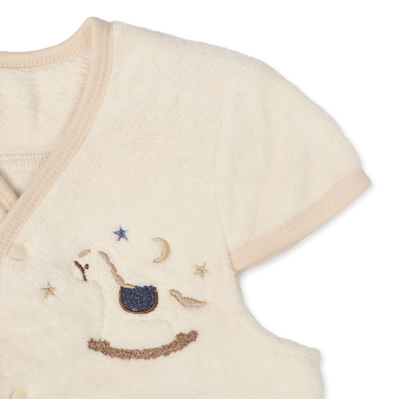 ●素材: [本体・フランネル]ポリエステル100% [メッシュ部分・3Dメッシュ]ポリエステル100% [別布・パイル・基布部分]ポリエステル100% [パイル部分]ポリエステル67%・レーヨン33% [バインダー部分・スムース]ポリエステル65%・綿35% ●サイズ(約・cm): [70~80cm]身丈60・身巾35・肩巾27 [80~90cm]身丈70・身巾37・肩巾29 [90~100cm]身丈78・身巾39・肩巾31 ※取り扱い注意 ・洗濯ネット使用・色落ちする場合があるので、 漬け置きを避け、洗濯後はすぐに脱水乾燥してください。 ・着用の際、摩擦などで他のものに色落ちする場合があります。 ・ボタンは閉じて洗濯をしてください。 ・生成及び淡色のものは蛍光増白剤の入っていない洗剤をご使用ください。 ・洗濯後は形を整えてすぐに干してください。 ・一度洗ってからご使用ください。 ・素材の特性上、着用中や洗濯したときに他のものに毛羽が付く場合があります。 毛羽が付着した際は、エチケットブラシやガムテープで除去してください。 ・洗濯の際は、他のものと一緒に洗わないでください。