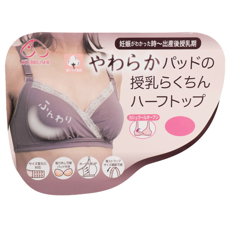 パッドの形状はプッシュアップタイプ(下側に厚みがあるタイプ) 胸の張りに優しくフィットするソフトパッド カップサイズがフィットするまでの期間のサイズ調整としても、お使い頂けます。 授乳が始まる産後は取り外すこともできます。 カシュールタイプでしっかり伸びる仕様でラクに授乳が出来ます。
