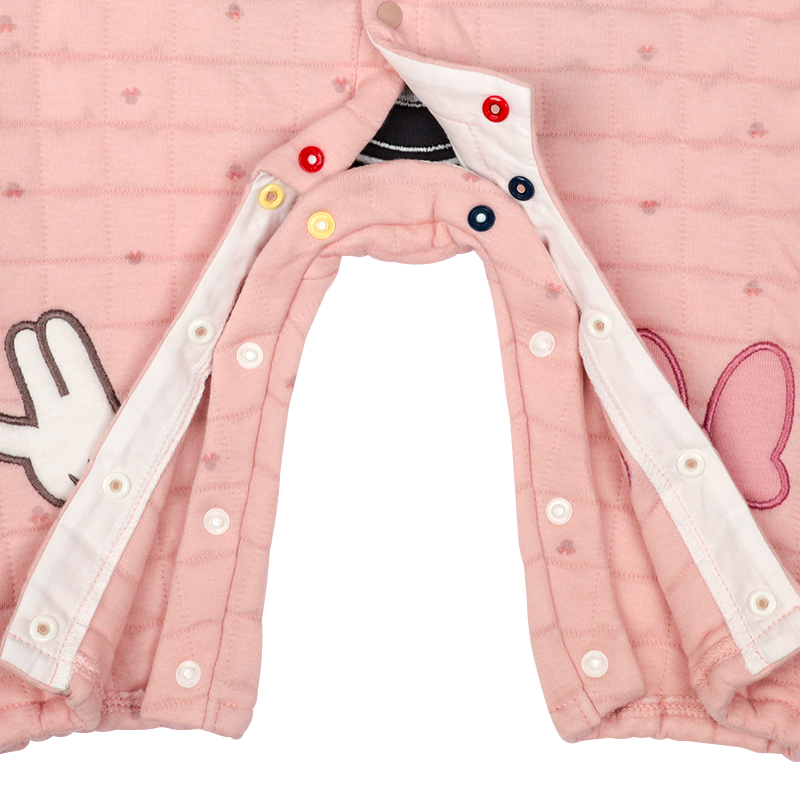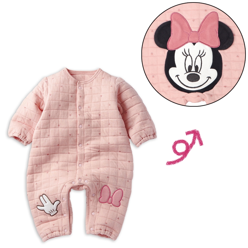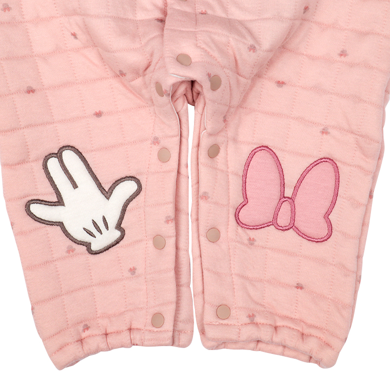 cDisney 中国製 ●素材= 本体 表側・裏側:綿100% 中わた:ポリエステル100% バインダー部分:綿100% おしりマチ部分:ポリエステル100% ●サイズ(約・cm)= 60(身丈51・身幅25・袖丈19.5・股上36・股下15) 70(身丈55・身幅26・袖丈22.5・股上38・股下17) 80(身丈59・身幅27・袖丈25.5・股上40・股下19)