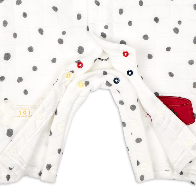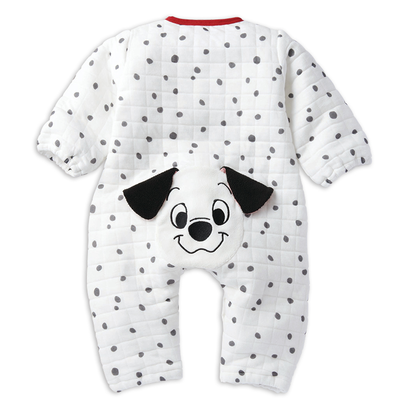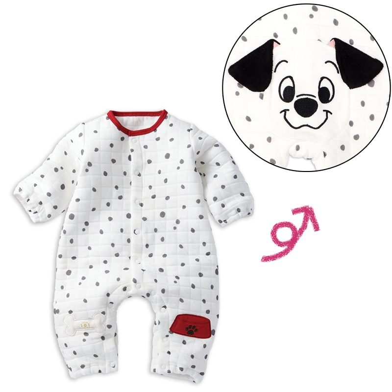 cDisney 中国製 ●素材= 本体 表側・裏側:綿100% 中わた:ポリエステル100% バインダー部分:綿100% おしりマチ部分:ポリエステル100% ●サイズ(約・cm)= 60(身丈51・身幅25・袖丈19.5・股上36・股下15) 70(身丈55・身幅26・袖丈22.5・股上38・股下17) 80(身丈59・身幅27・袖丈25.5・股上40・股下19)