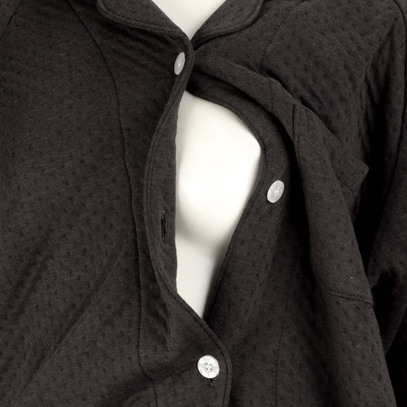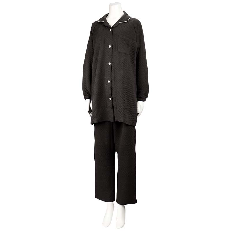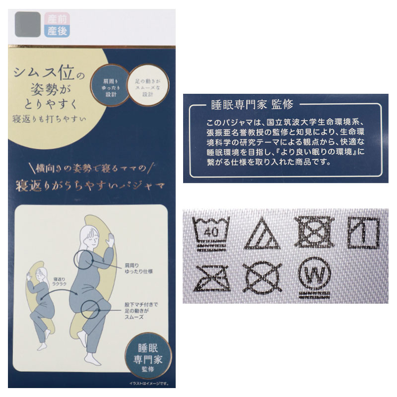 夏以外の季節に対応できる素材のマタニテイーパジャマです。肩周りゆったり仕様で股下にマチが付き足の動きがスムーズ。横向きの姿勢で寝るママのための寝返りがうちやすいパジャマです