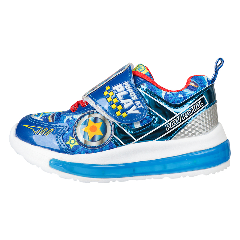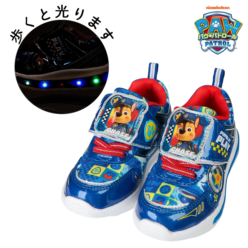 パウパトロールの人気キャラクターチェイスをマジックテープにあしらった振動でソールが光るシューズです。 ソール部分に振動で光るLEDがあり、暗い場所での視認性も高まります。 サイズ展開:15.0cm、16.0cm、17.0cm