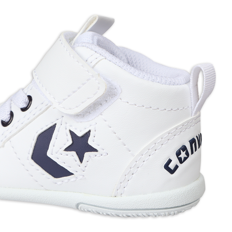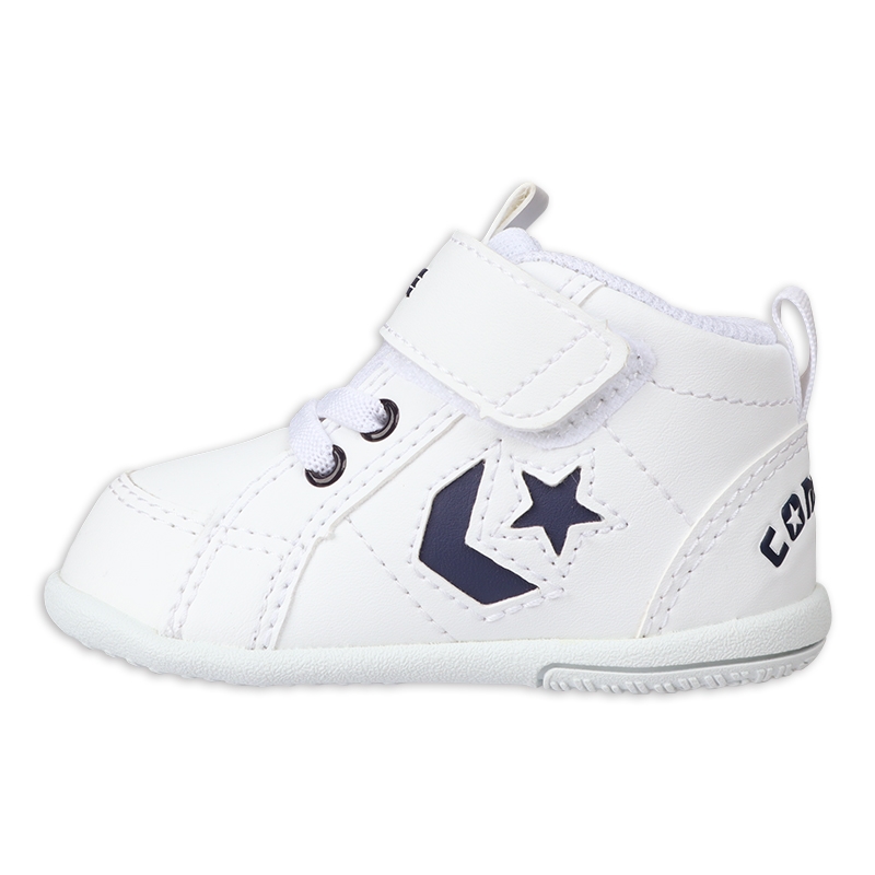 ・ベビーの足にやさしいソフトなシンセティックレザーを使用 ・歩き始めの赤ちゃんに対応した軽量で屈曲性の良いソール仕様 ・MIDカットモデルで不安定なベビーの足元をやさしくサポート ・ベルトタイプに踵ループ付きで履かせやすいデザイン