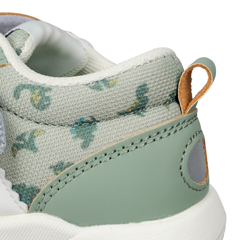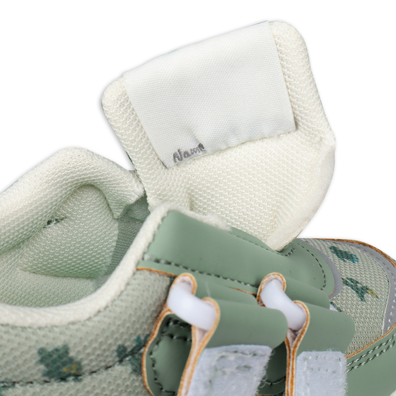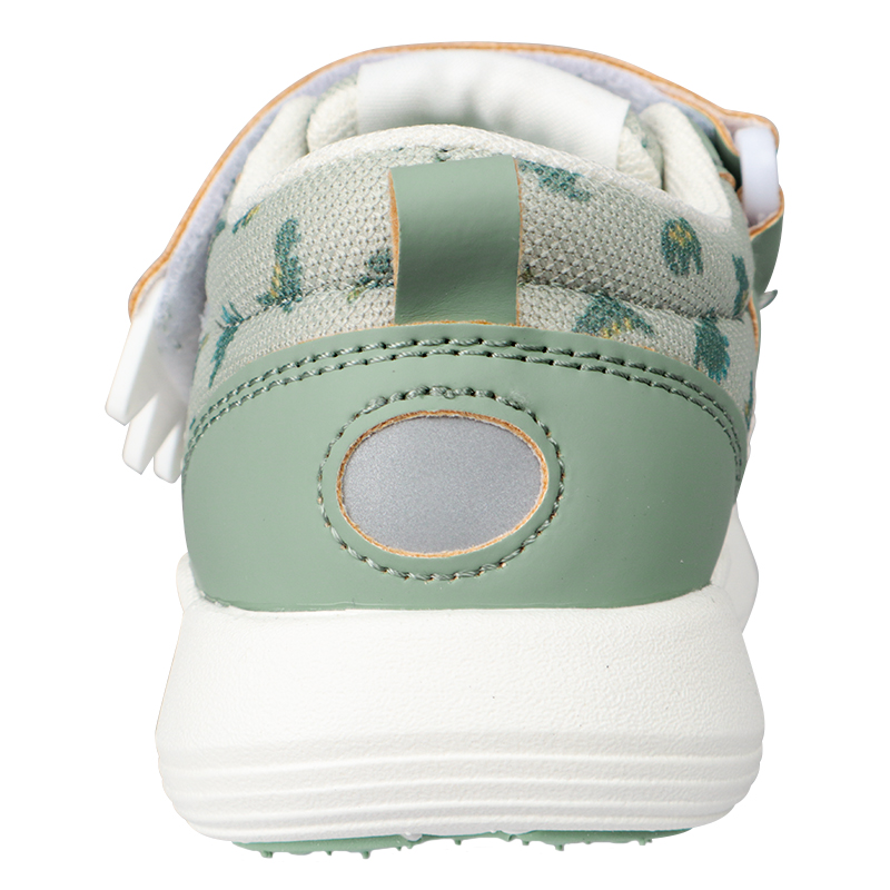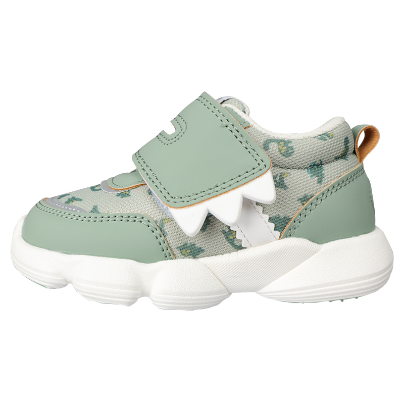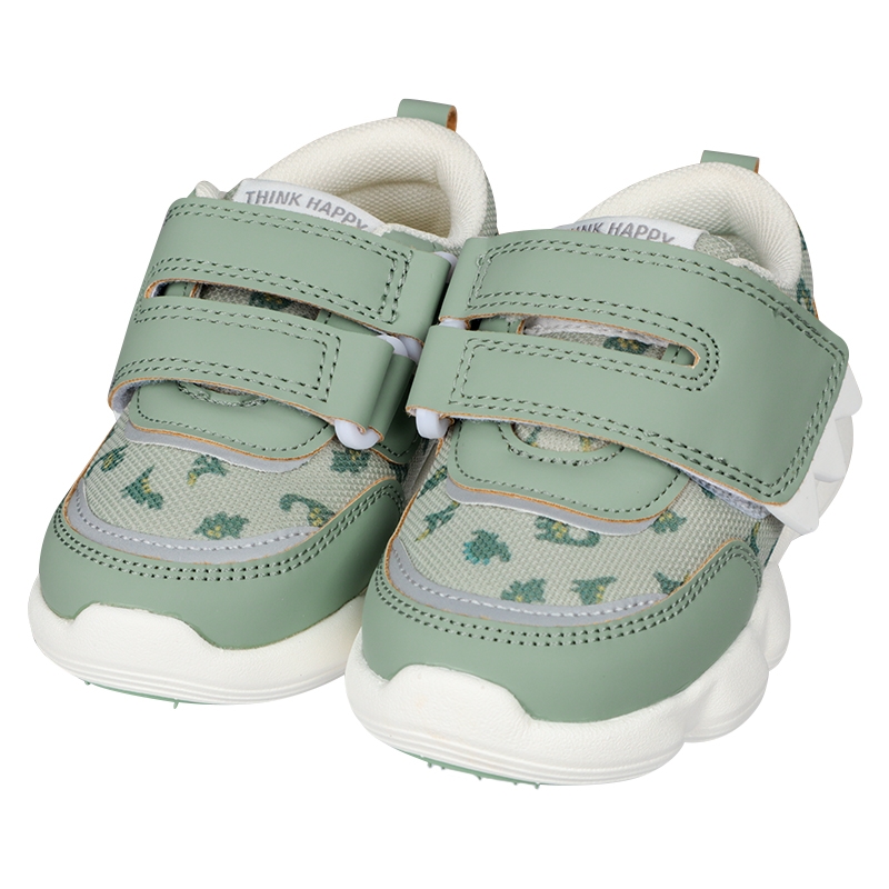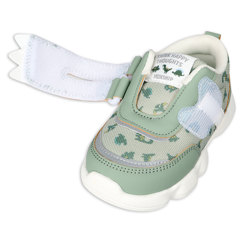 軽くて歩きやすく・履き口が面ファスナータイプの履かせ易いシューズ 履き口ソフトなクッション付き 14cmで両足で約140グラムと軽量 中敷にひだり・みぎプリントで左右が分かる。履き間違いを防止します 屈曲性GOODで歩きやすい リング付きベルトで戻りにくい 総柄プリントチェリーと恐竜 ¥2280と、とてもリーズナブル