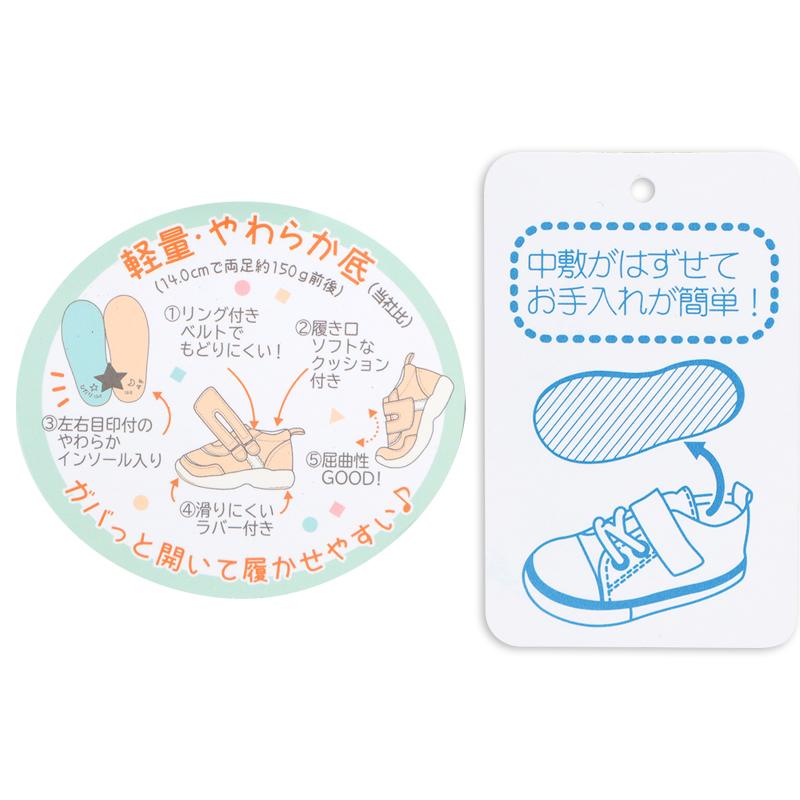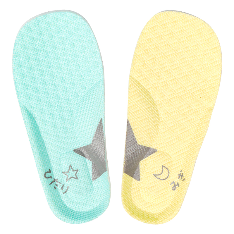 中敷にひだり・みぎプリントで左右が分かる。履き間違いを防止します