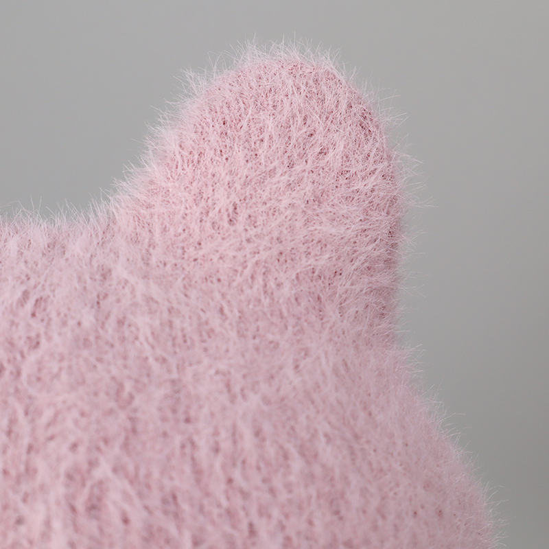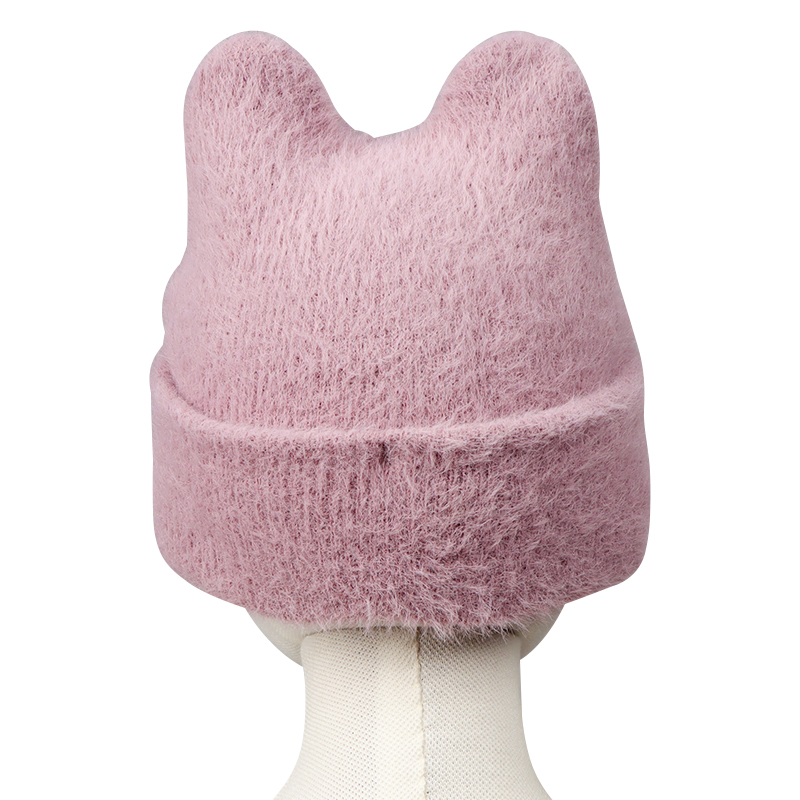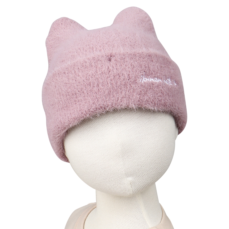 一体型ラインでつくる、ねこ耳シルエットのアイテムです。 こっくりカラーと起毛糸のニュアンスが可愛い。 やわらかくのびるニット素材です。 被り口の折り返し部分はワンポイント刺繍が飾り、こなれた印象をプラスします。