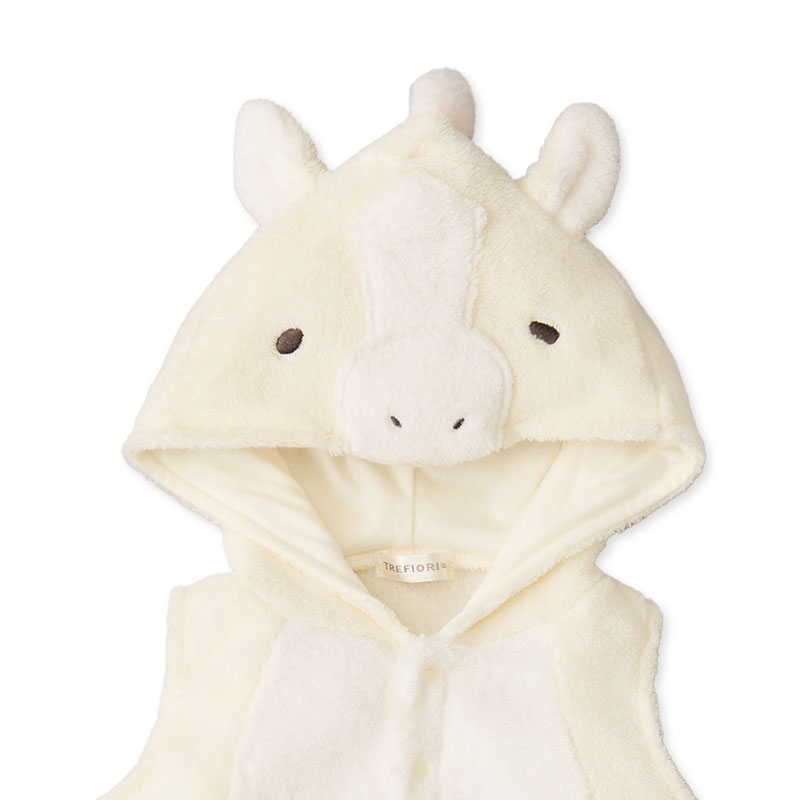 フリース素材で来年の干支をデザインしたフード付きベストです。 フード部がうまの顔になったかわいいベストです。裾部分はゴム仕様。 年賀状などの撮影や新年に家族が集まった時の写真撮影に大活躍するアイテムです。