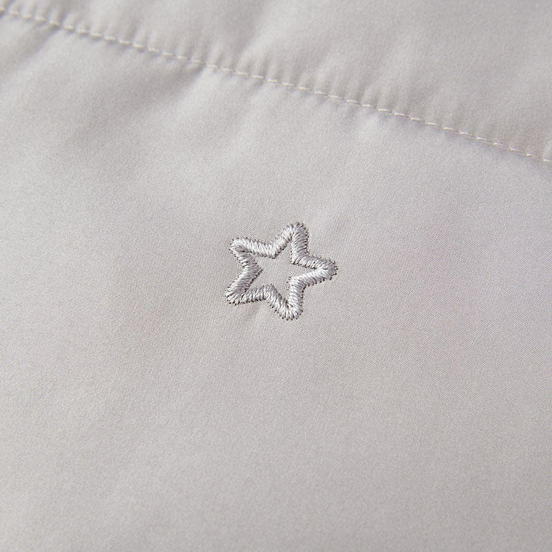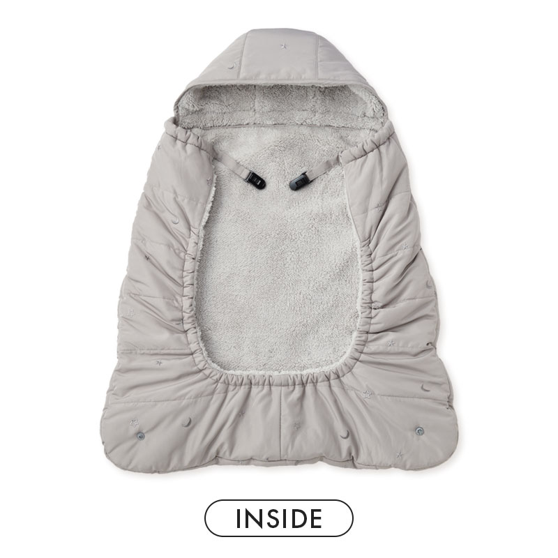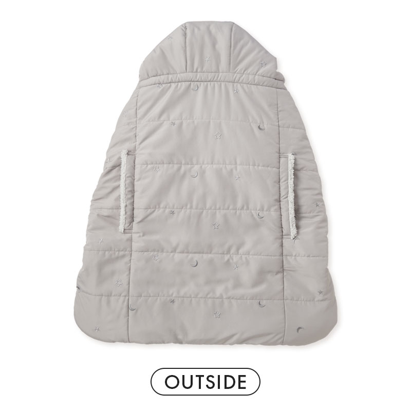 星柄の刺繍のデザインが男の子、女の子どちらでも使えることと抱っこ紐の色に合わせることができたのでグレーを選びました。