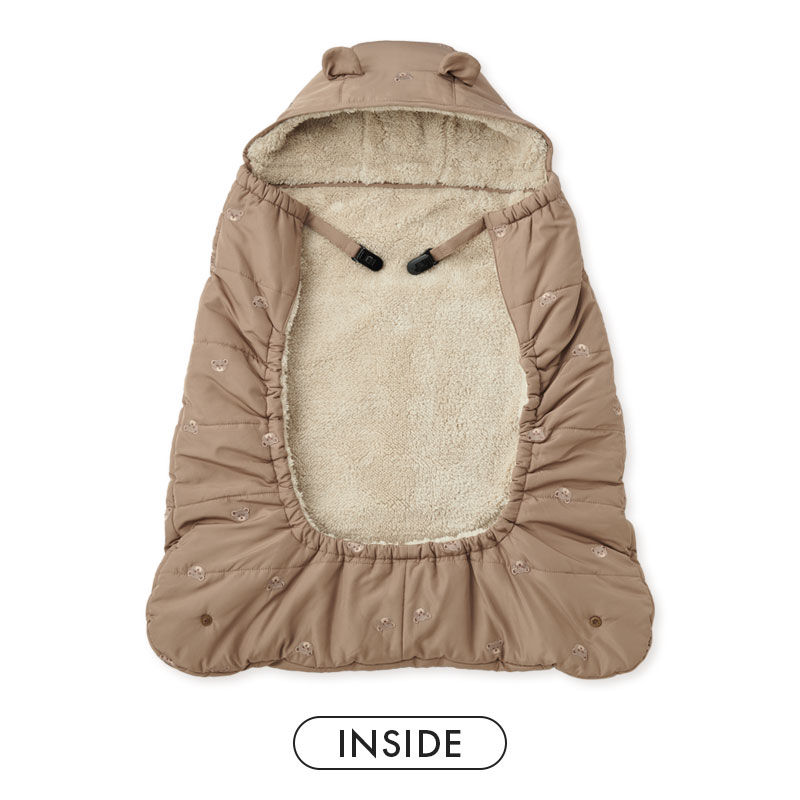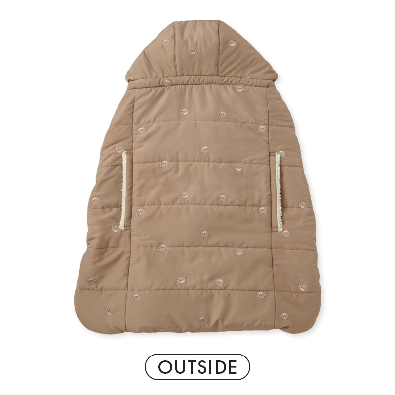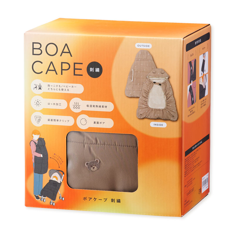 ベビーカーにもだっこひもにも装着簡単で、 吸湿発熱中綿と裏地にボアを使用しあたたかく、 撥水機能が付いた中綿ケープになります。 表地にはおしゃれな総柄刺しゅうが施されておりとてもかわいい商品になっています。 足元まで覆う仕様になっている為、寒さや風からも赤ちゃんを守ります。